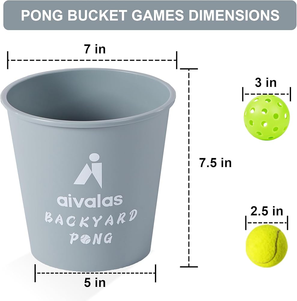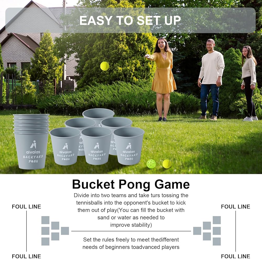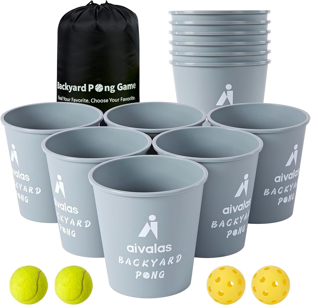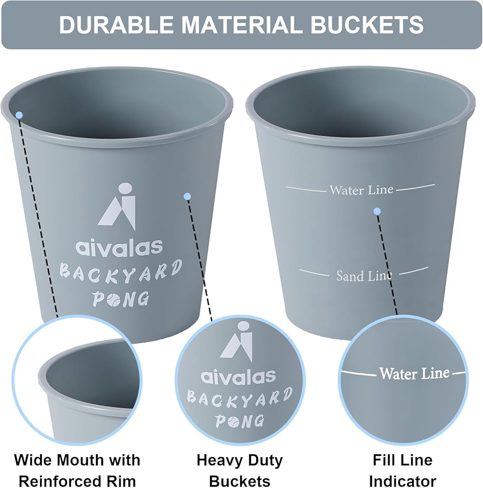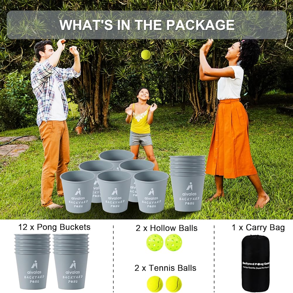Aivalas Yard Pong Outdoor Games Set, Giant Pong Game with Durable Buckets and Balls, Toss Throwing Game for Beach, Camping, Lawn and Backyard, Grey