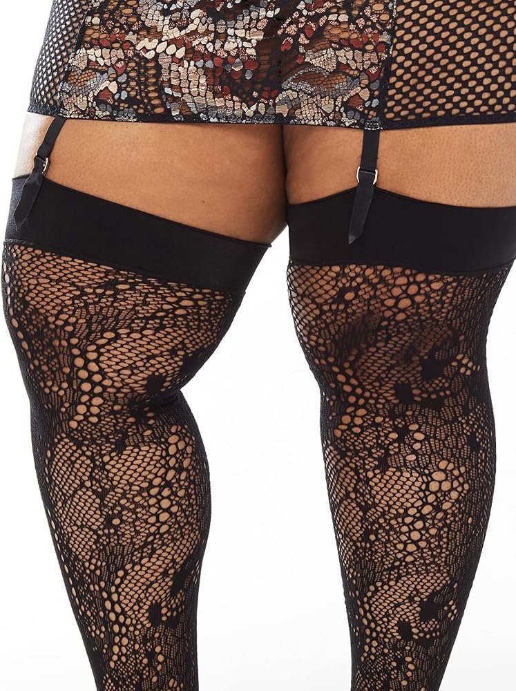 Our Fatal Attraction Fishnet Thigh High Stockings are seamlessly crafted with our Xclusive snake pattern. Pair with the Cold-Hearted Snake Lace Slip with Garter to complete your lingerie look.