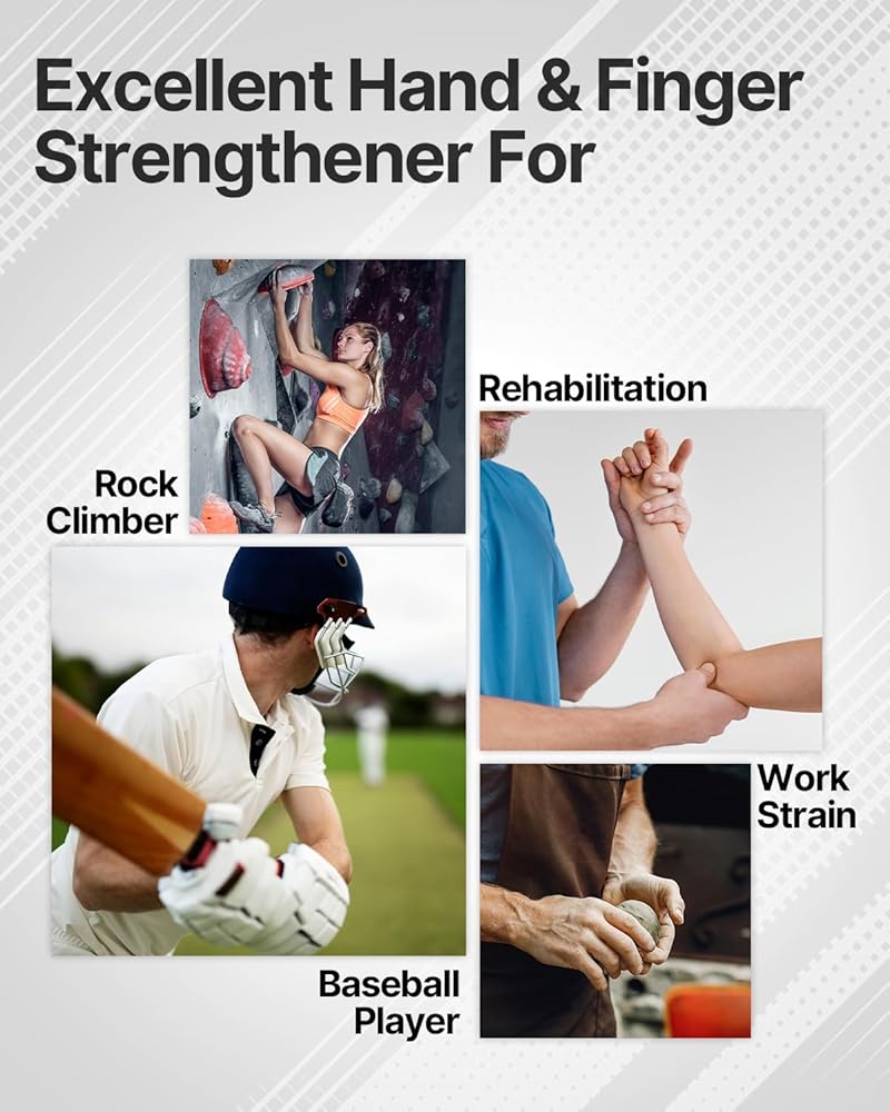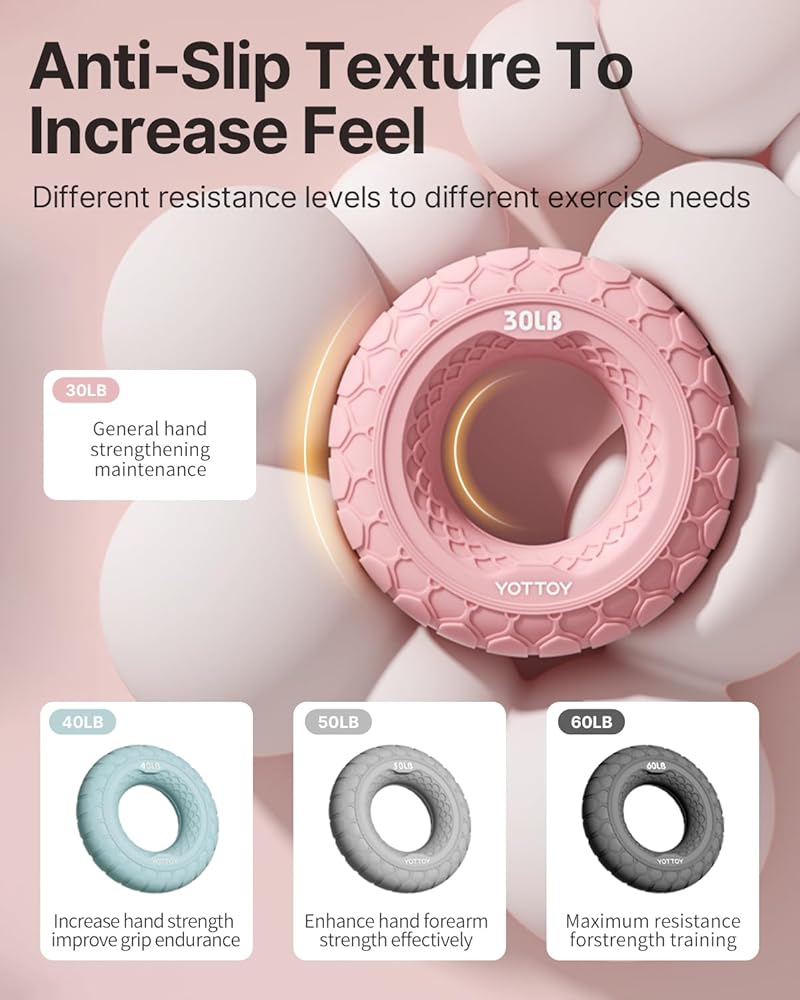 • مجموعة متنوعة من مستويات المقاومة: مع مستويات مقاومة تتراوح من 30 رطل إلى 60 رطل، تسمح حلقة المقبض الخاصة بنا بالتدريب التدريجي المصمم خصيصًا لمستوى قوتك. سواء كنت تتعافى من إصابة أو تصقل مهاراتك في العزف على الجيتار أو التنس أو تسلق الصخور، فلدينا خيارات مقاومة قابلة للتخصيص. احصل على استعداد لرفع مستوى لعبة قبضتك!