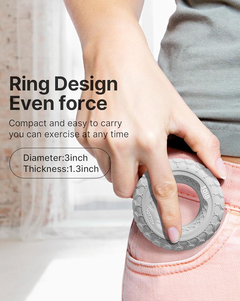 • تصميم مريح لجميع الأعمار: تم تصميم حلقة المقبض الخاصة بنا بدقة مريحة، وتتناسب بشكل مريح مع راحة يدك، وتوزع الضغط بالتساوي. مناسب للمستخدمين من جميع الأعمار، وهو محمول ومثالي للاستخدام أثناء التنقل. ضعه في جيبك وحوّل أي لحظة إلى جلسة لتخفيف التوتر.