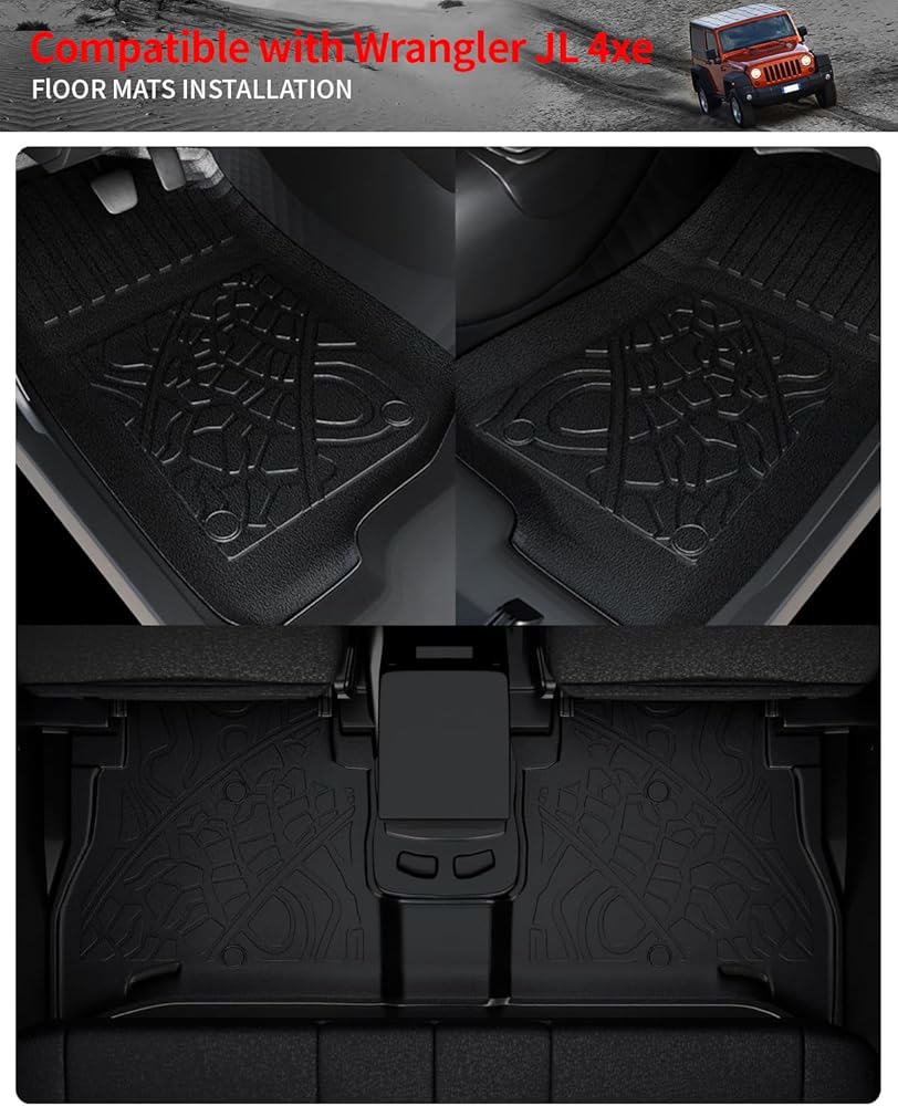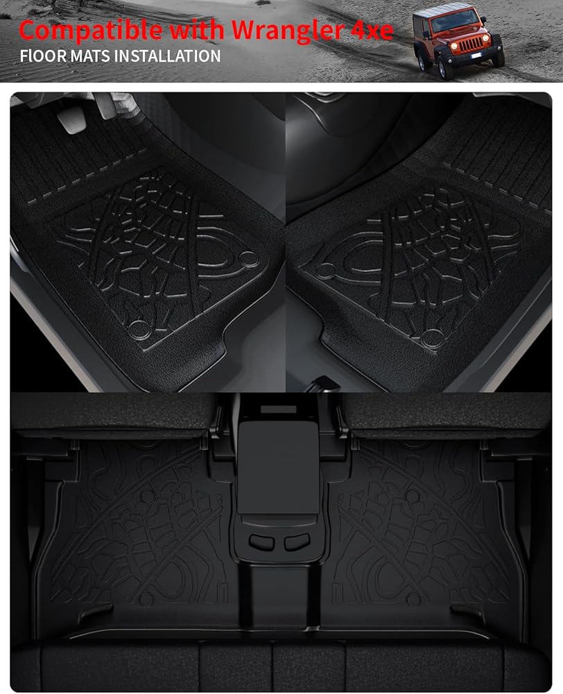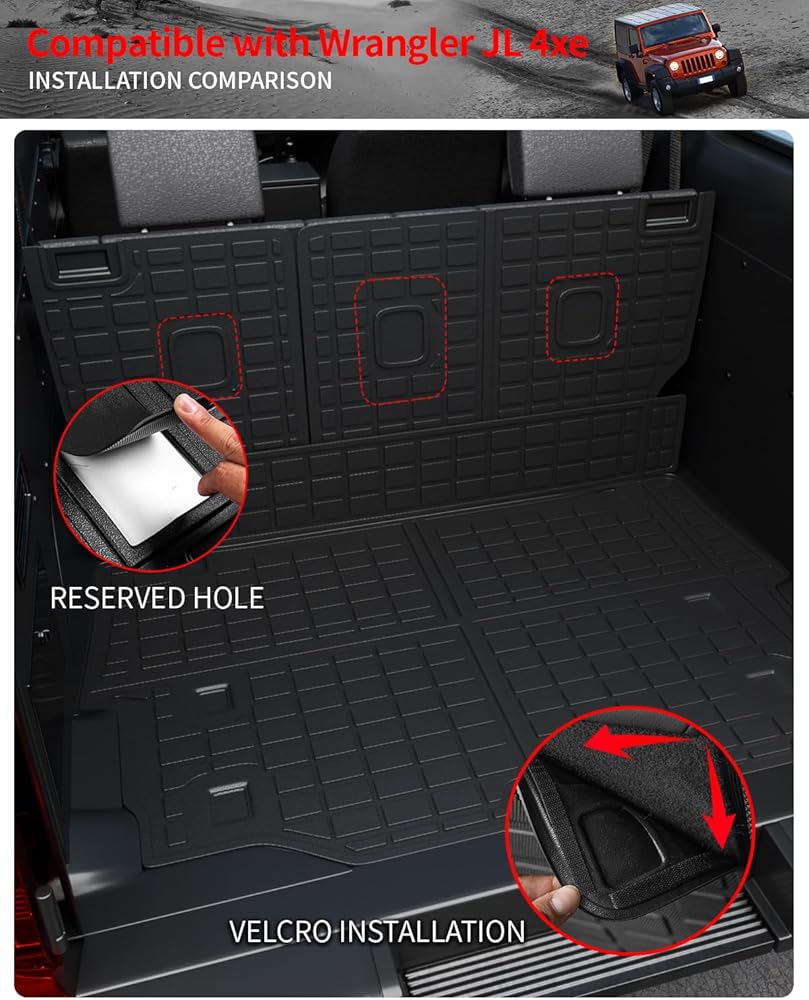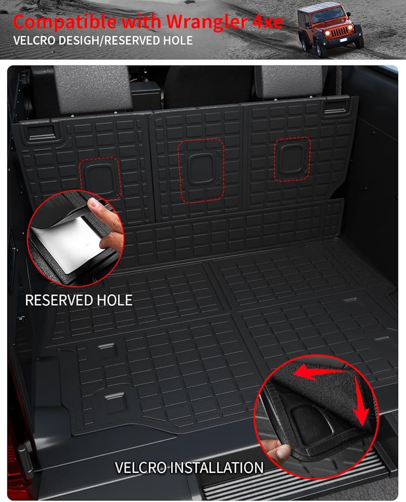 متوافق مع سجادة صندوق السيارة Wrangler 4XE + سجادات مسند الظهر + سجادات الأرضية