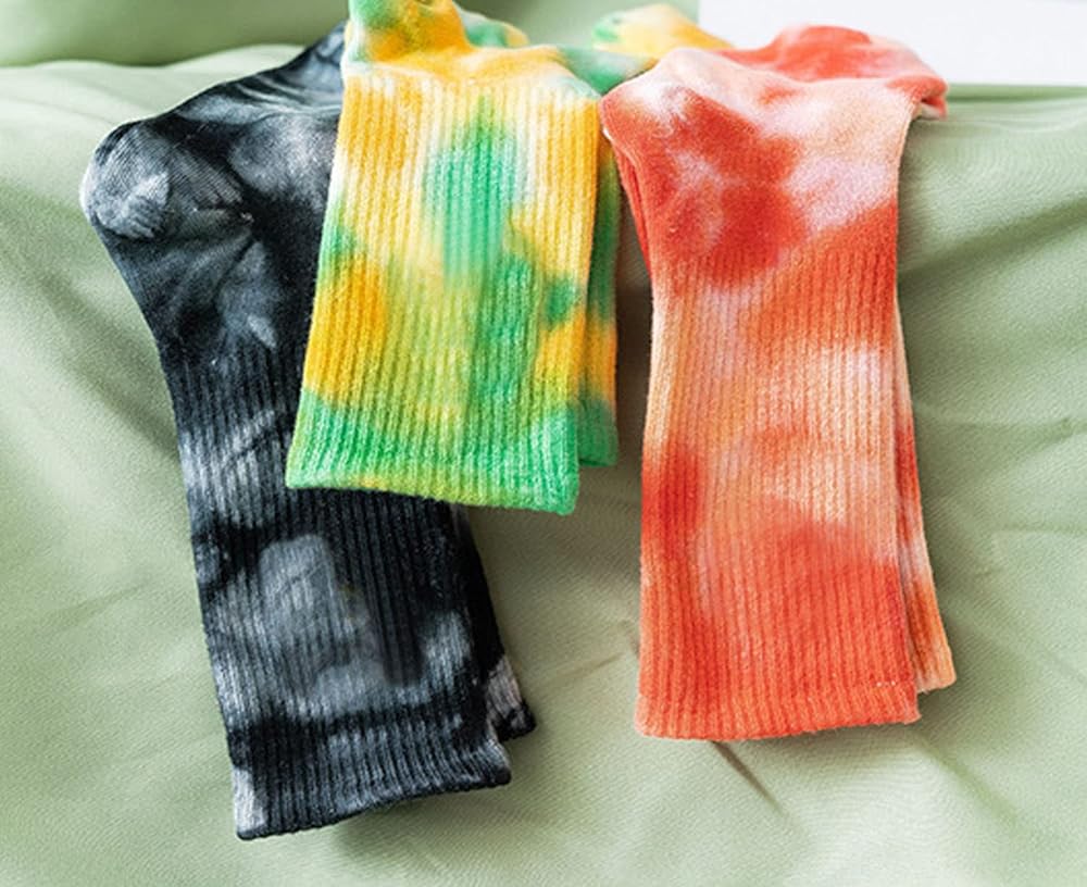 Gender: Girls Or Women Color: Black,Yellow,Red,Navy Blue Weight: 0.2 Kg Package Include: 3 Pairs Of Socks Stop Being Boring, Brighten Up Your Day These Multicolor Socks Will Allow You To Be Colorful, Young, Fashion And Fun Underneath The Dull Grey Suit You Are Forced To Wear To Your Adult Job. Tie Dye Cotton Crew Socks Seamless Toe Closure And Toe Venting; Elastic Arch Support, Deep Heel Pocket And Dry Low-Gore Seam; Bright And Colorful, Vintage Style Design; Soft And Comfortable For Your Feet. Easy To Match Novelty Crew Socks Work Great With Any Type Of Shoe And a Variety Of Pants, Casual Or Dress, Office Or Play. Gift Idea Perfect Gifts For Any Festivals Or Parties: Halloween, Christmas, Thanksgiving, Wedding, Birthday, Joke And Gag Gifts