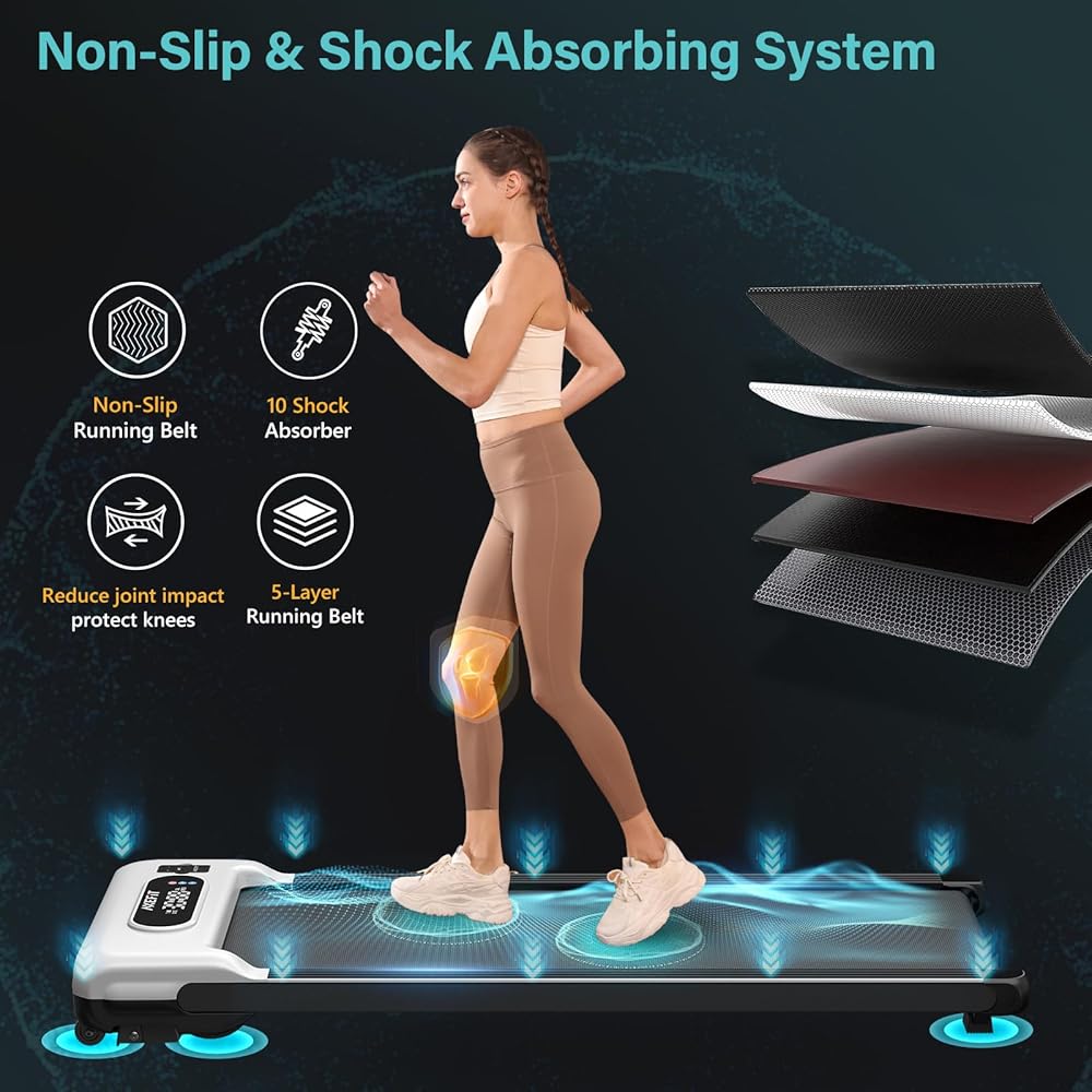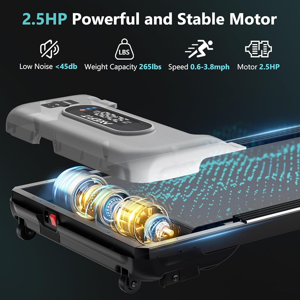 【جهاز المشي AXEFIT】جهاز المشي الموجود أسفل المكتب مجهز بمحرك قوي وهادئ بقوة 2.5 حصان، لا داعي للقلق بشأن استخدامه والتأثير على الآخرين، وهو مصمم للاستخدام في المنزل والمكتب. مع أقصى وزن يصل إلى 265 رطلاً. نطاق السرعة 0.6-3.8 ميل في الساعة، يسمح لك جهاز المشي هذا بتخصيص سرعة تمرينك لتلبية احتياجاتك، مما يجعل من السهل مواكبة عادات اللياقة البدنية الخاصة بك!