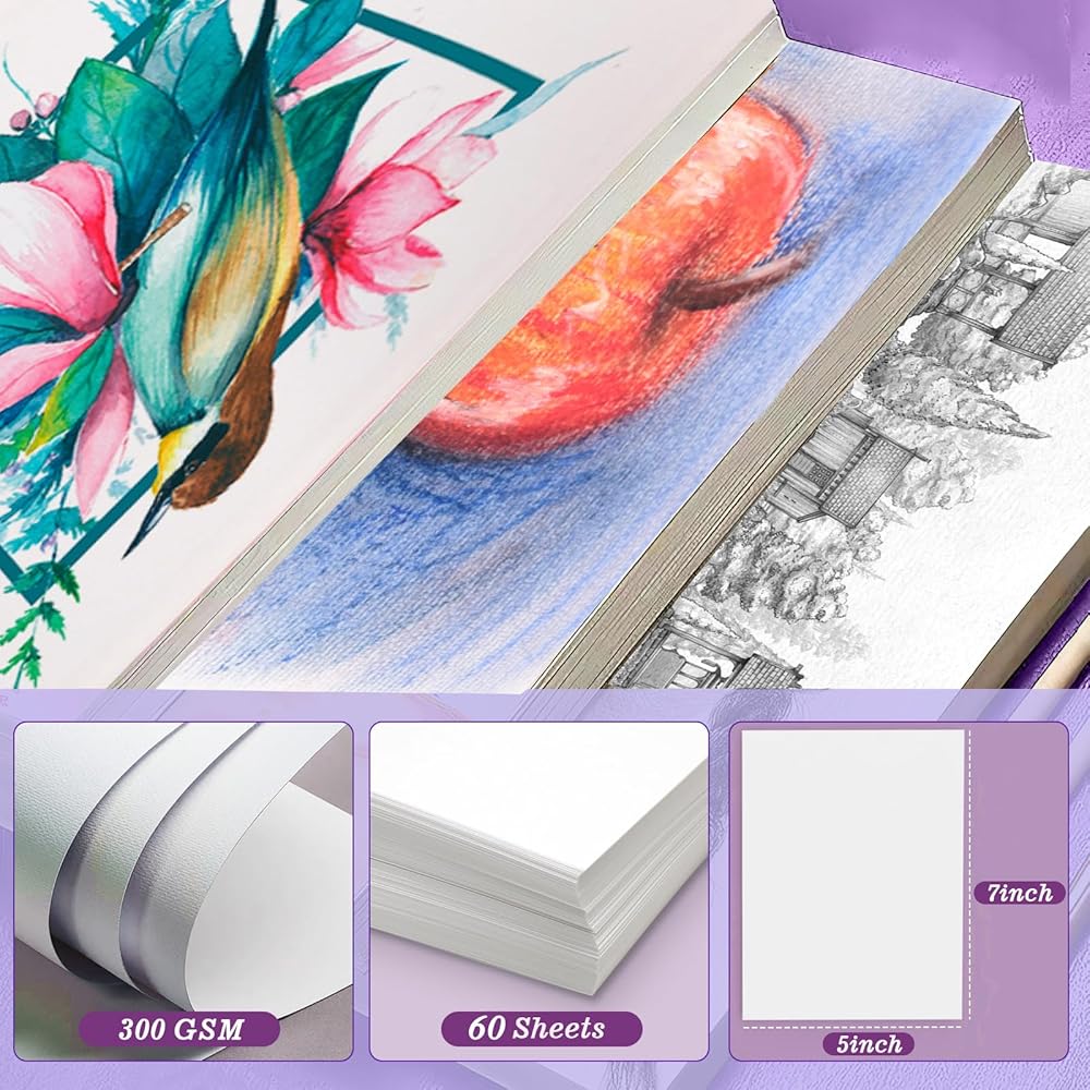 حجم صغير للمبتدئين: يبلغ مقاس ورق الألوان المائية الخاص بنا 12.7 × 17.78 سم، وهو مناسب للأطفال والطلاب ومحبي الرسم والمزيد.