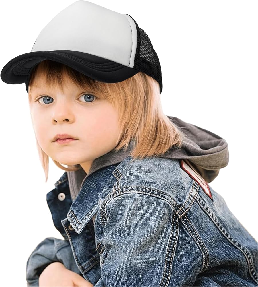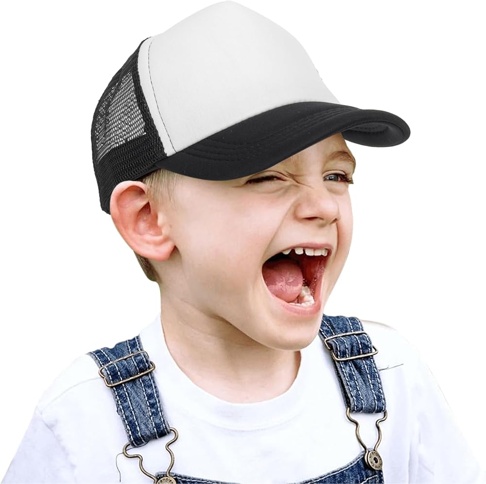 【Sun protection】- The kids trucker hat keeps your kids face from harmful ultraviolet rays and prevent they sunburnt in summer. Each kids trucker hat has a mesh backing. This means more skin protection with less heat compared to full fabric hats.