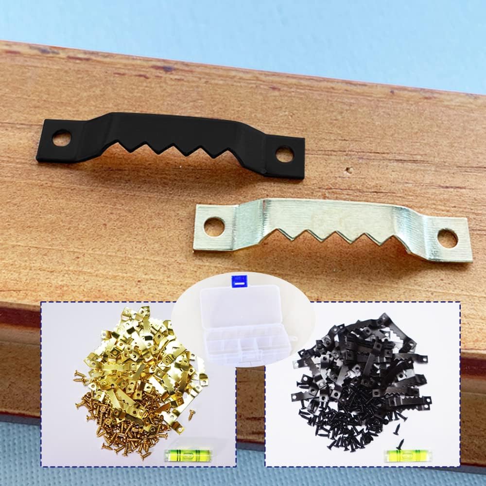• 😊Product specification: The sawtooth canvas hangers are 1-1/2 inches wide and 3/11 inches long, the screws are 1/3 inches long, M3. They are all made of high-quality metal with smooth surface, sturdy and durablity