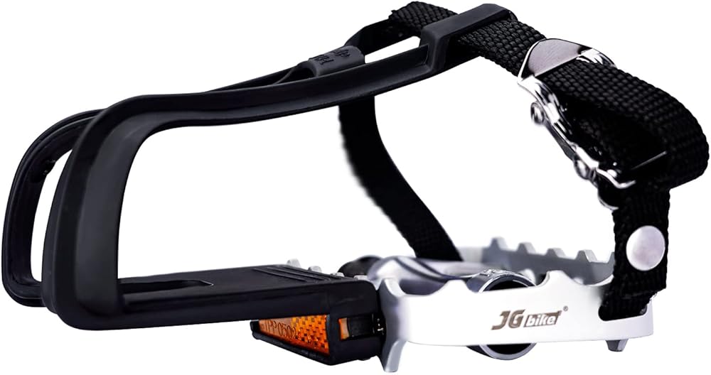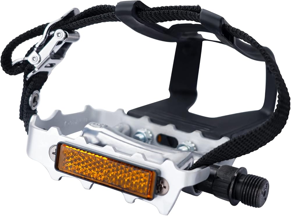 JGbike Bike Pedals with Toe Clips and Straps for Exercise Outdoor Cycling and Indoor Stationary Bike 9/16-Inch Spindle Alloy Bicycle Pedals Wellgo