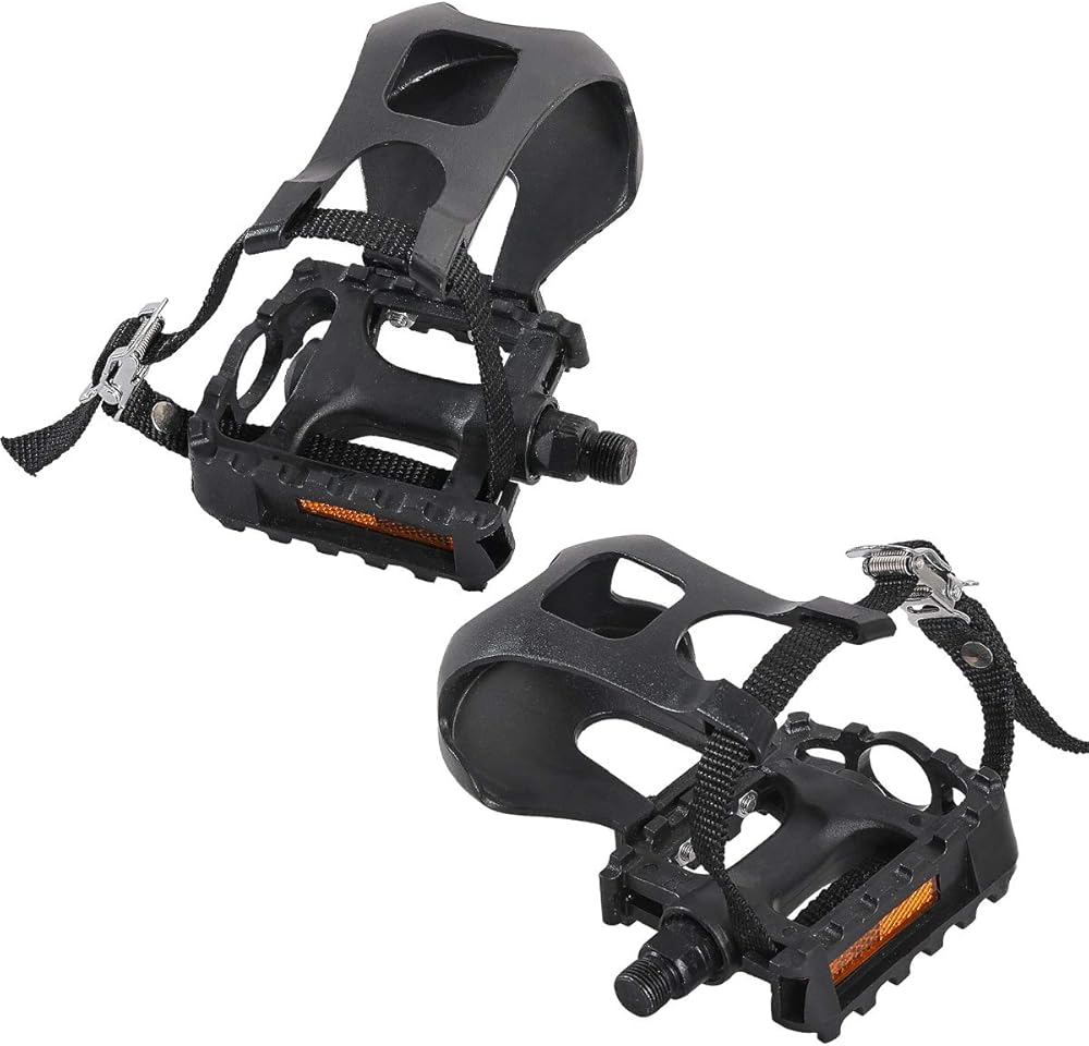 دواسات دراجة DRBIKE مع مشابك/أقفاص وأشرطة لأصابع القدم، دواسات دراجة PP مقاس 9/16 بوصة لممارسة الدراجة الجبلية، زوج واحد