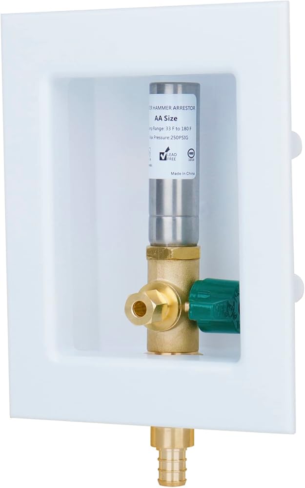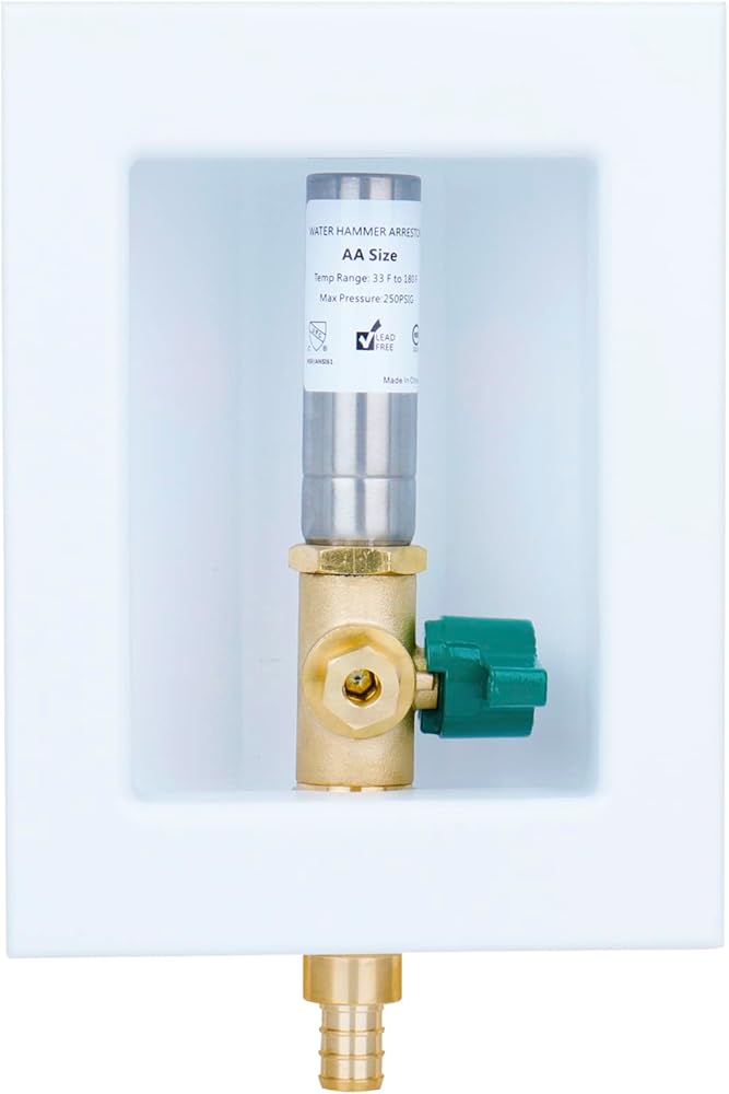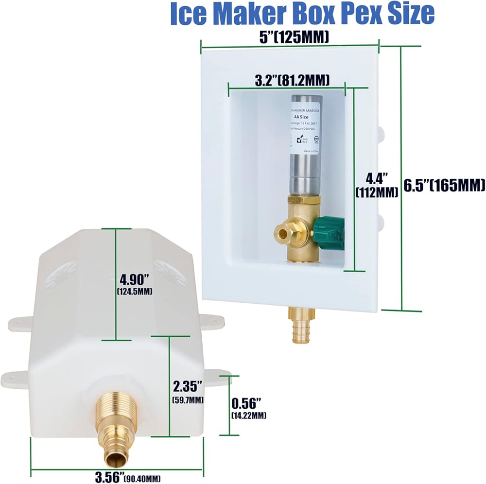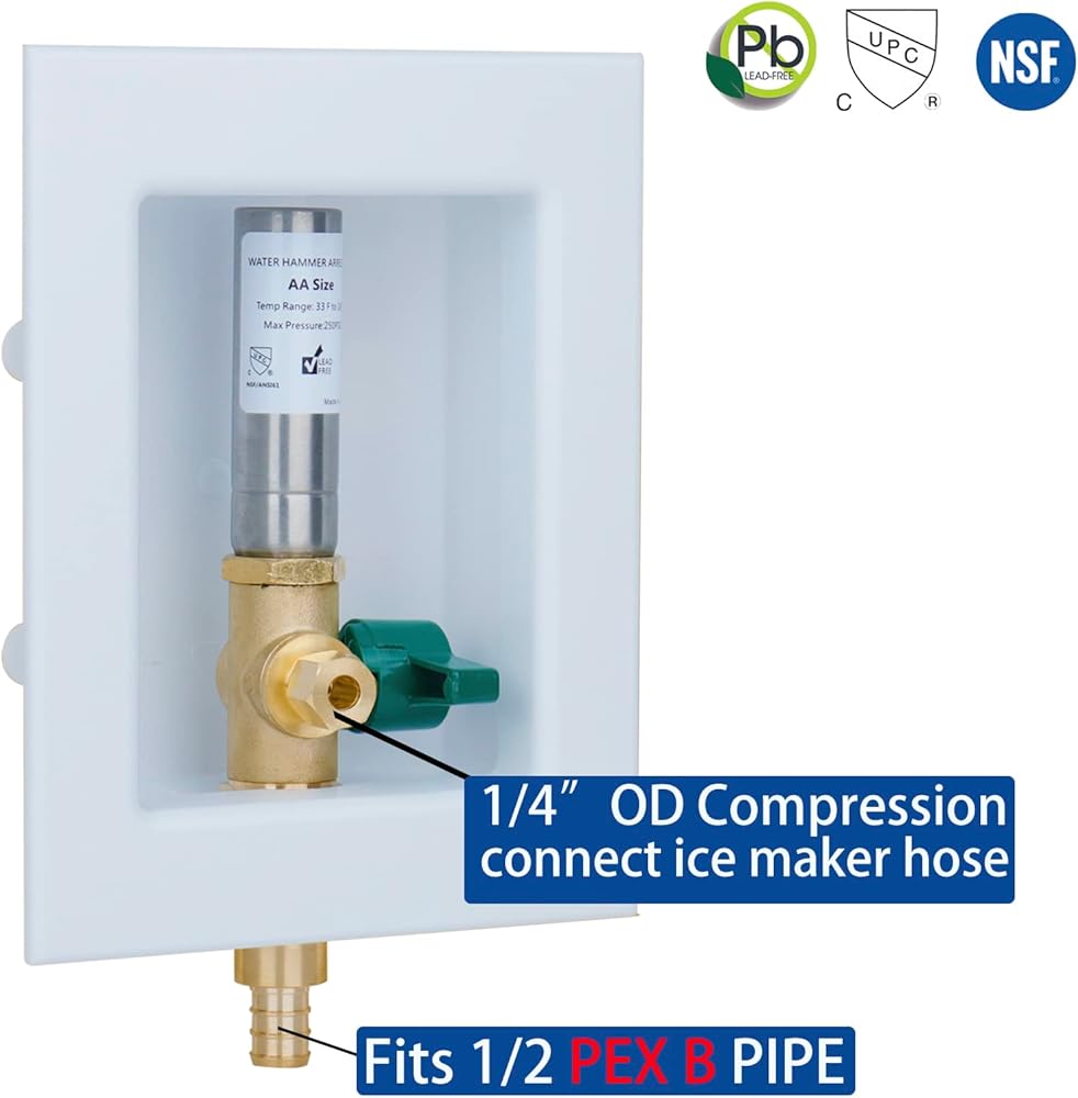 صمام صندوق مخرج صانع الثلج مع مدخل PEX 1/2 بوصة، صندوق حائط صانع الثلج PEX مع صمام إيقاف تشغيل 1/4 لتوصيل أنابيب PEX B (F1807) مع مانع مطرقة من الفولاذ المقاوم للصدأ