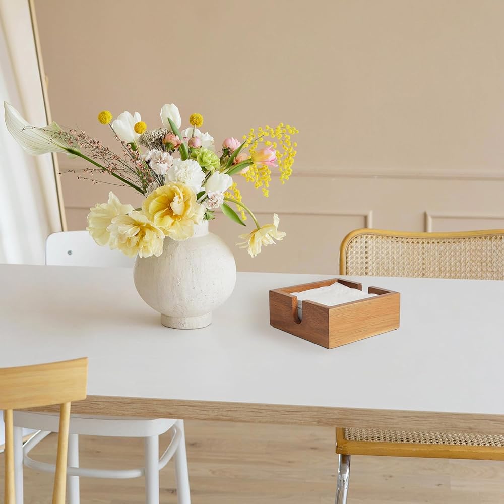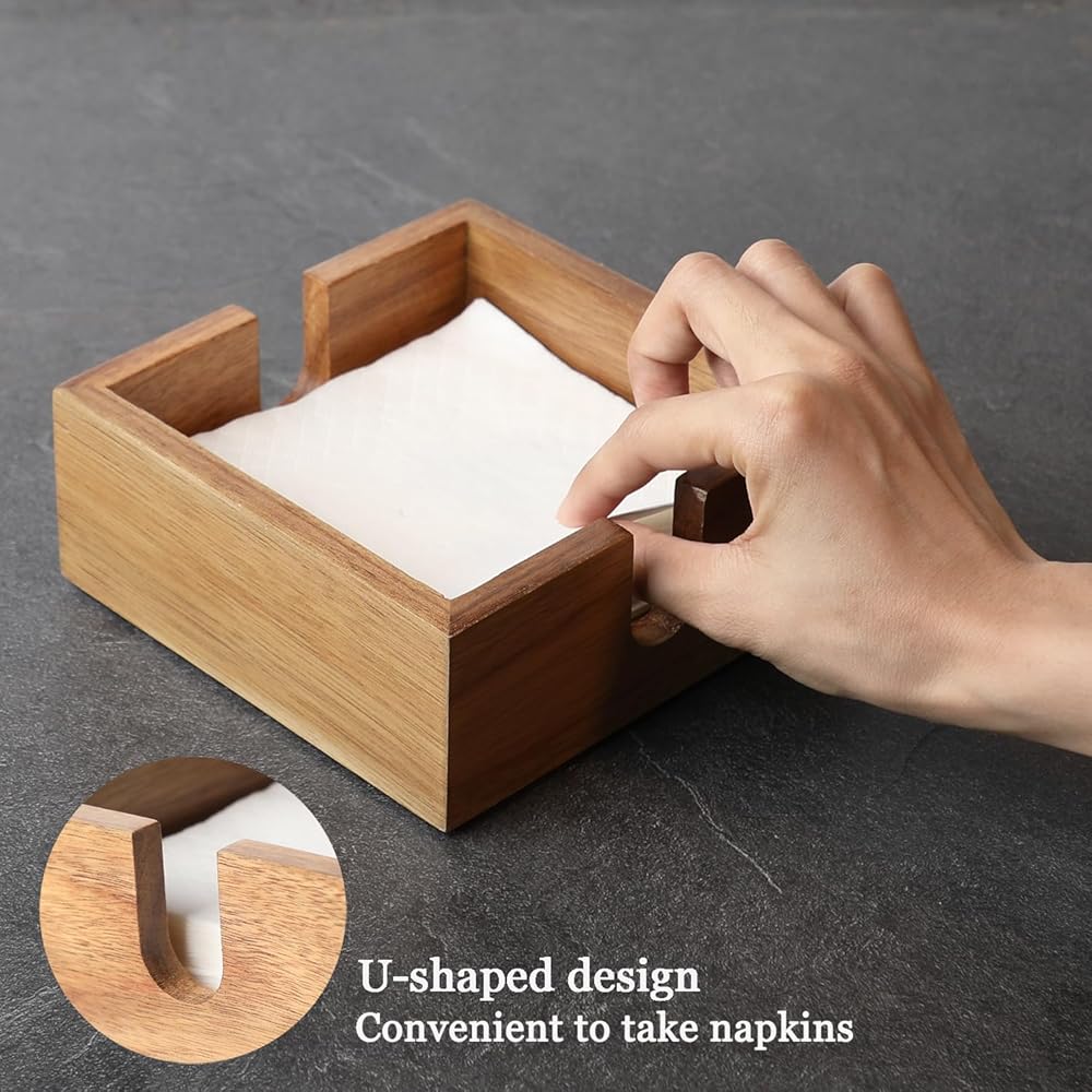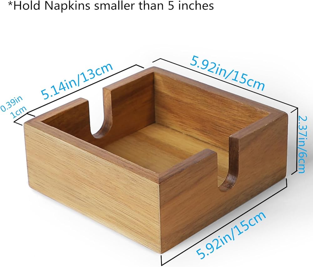 مصممة بعناية: تتيح الفتحة على شكل حرف U الموجودة على جانب الصندوق سهولة الوصول إلى المناديل التي يمكن أن تعزز تجربة وجبتك. تم تصميم الصندوق ليحمل مناديل أصغر من 5 بوصات، يرجى التأكد من حجم المناديل قبل الطلب.