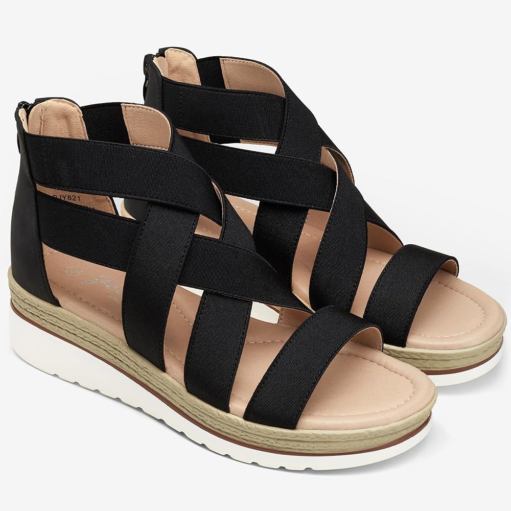 ✔ الصنادل النسائية ذات الأشرطة يبلغ ارتفاع الكعب حوالي 1.93 سم. ارتفاع الكعب المناسب يجعلك تمشي طوال اليوم دون تعب.
