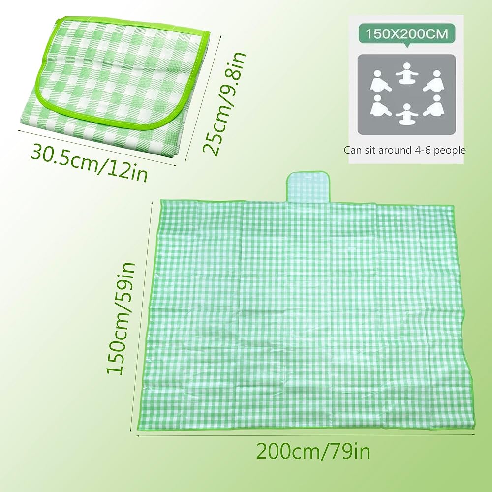 Product Size: The outdoor picnic blanket is 60 "x 80" unfolded to accommodate 4-6 adults and 12 "x 9.8" x 1.6 "folded for easy portability, which makes it ideal for picnics with family, friends or groups.