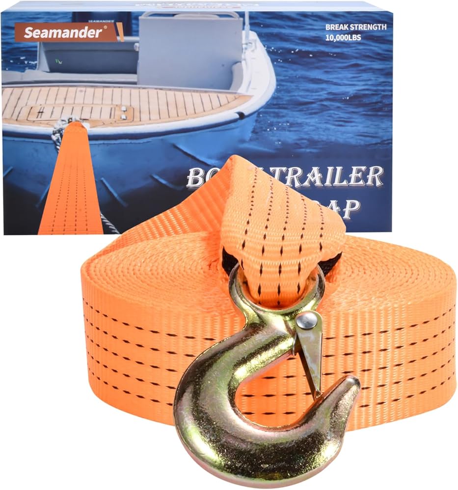 • حزام رافعة مقطورة قارب Seamander مصنوع من مواد صناعية، وهي مادة شبه مقاومة للماء ولا تتمدد بقدر النايلون مع منع العفن، وهذا أمر مهم لأن أحزمة الرافعة غالبًا ما تبتل. بالإضافة إلى ذلك، تتميز هذه الونش أيضًا بأنها مقاومة للتمزق والتمزق.