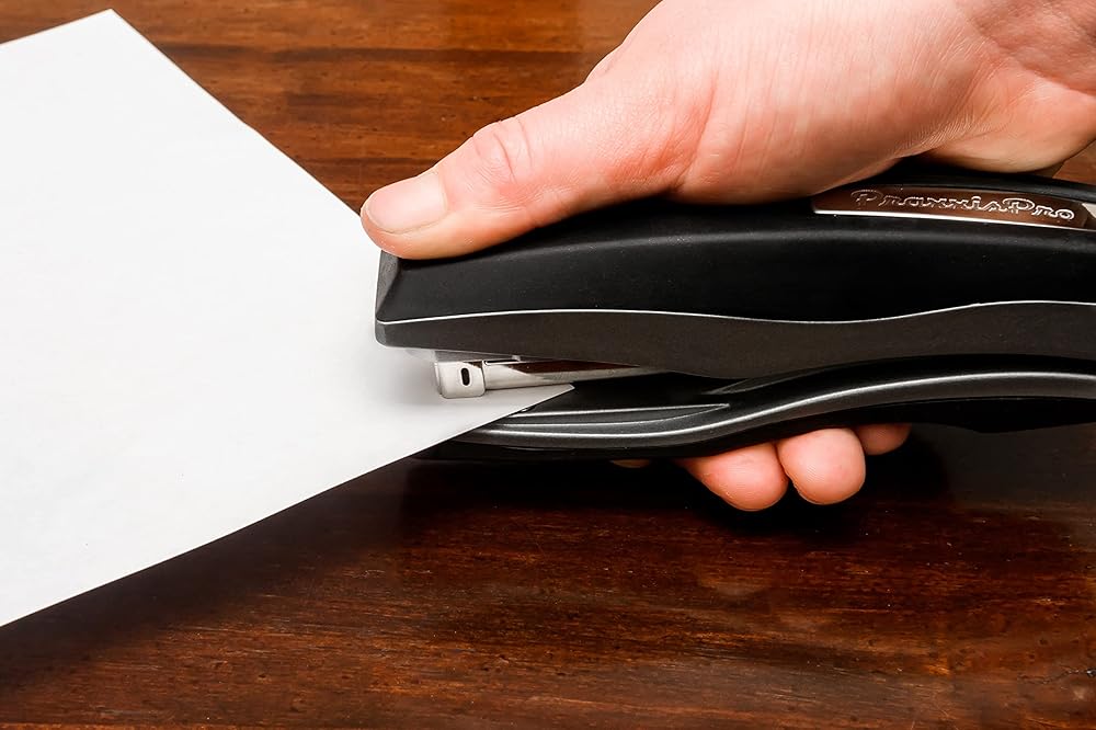 The Basileus Ergonomic Desk Stapler features a long-reach design and a soft-grip top and bottom so it is comfortable to use and won't scratch up your desk surface; you are able to staple quickly and efficiently while also being able to staple more paper with less effort.