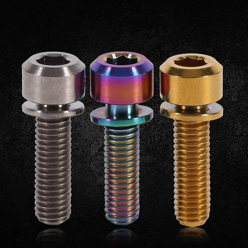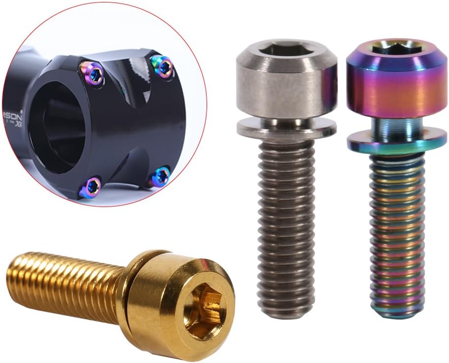 AUNMAS 6 قطعة جذع دراجة الترباس دراجة هوائية جبلية M5 x 18 مللي متر الجذعية البراغي المسمار مع غسالة استبدال مجموعة ل جذع دراجة الجبلية (1 #)