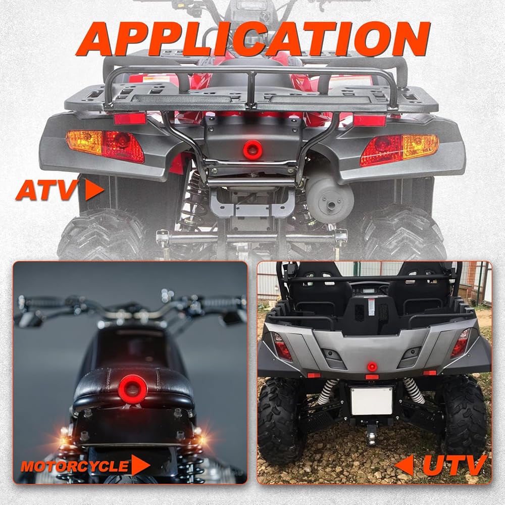 【تركيب عالمي】يناسب ضوء الذيل LED للدراجة النارية معظم الدراجات النارية بتيار مستمر 12 فولت، مثل Cafe Racer Chopper Bobber Golf Trailer ATV UTV. يستخدم بشكل كبير كضوء خلفي، ومصباح فرامل، وإضاءة تشغيل.