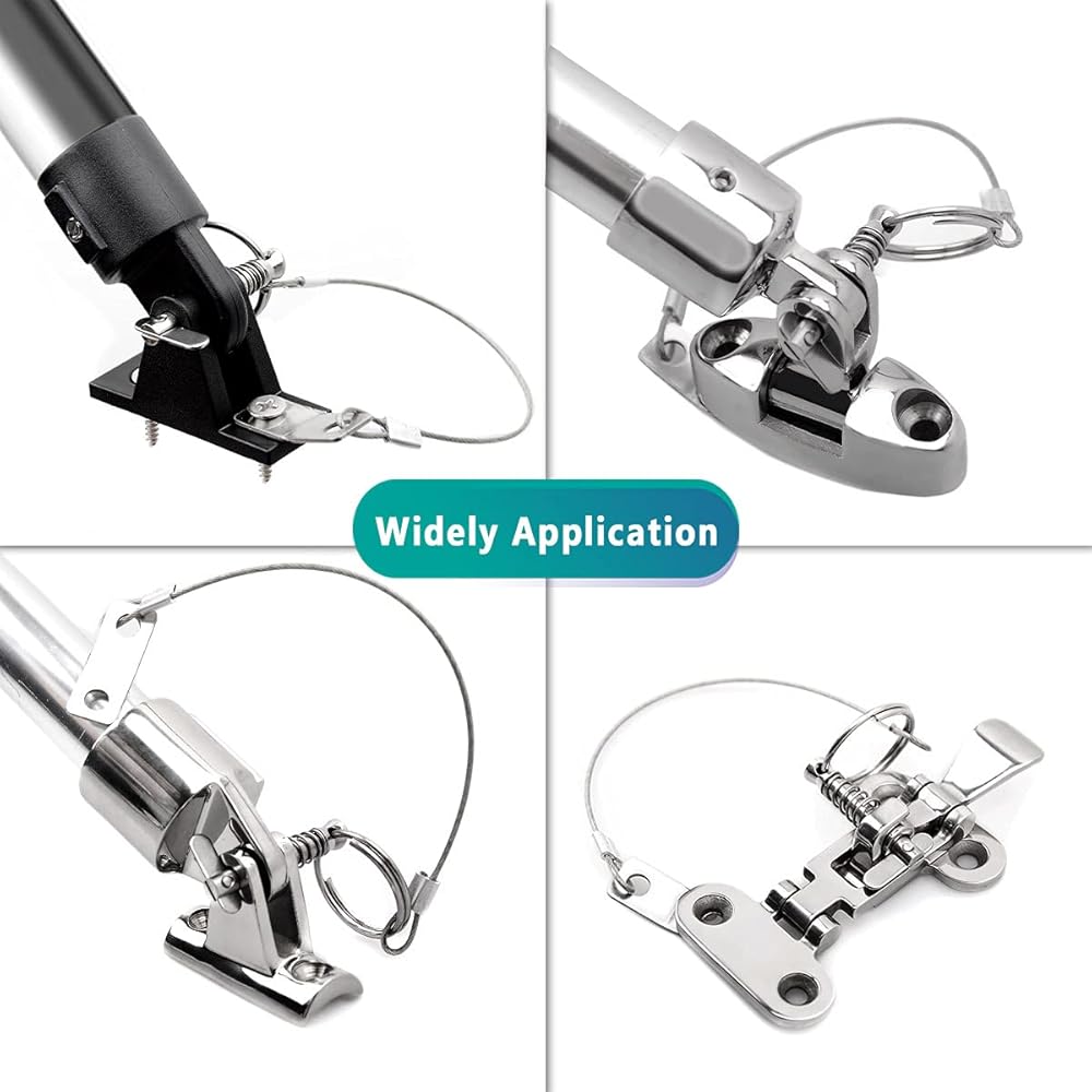 • دبوس بيميني سريع التحرير مع زنبركات قابلة للانزلاق، قمم بيميني، قمم القوارب، أعمدة الدعم، مقعد الجبل البحري المفصلي، مشبك أنابيب من الفولاذ المقاوم للصدأ، إلخ، يساعد على استبدال أحجام مختلفة من قمة بيميني بسهولة