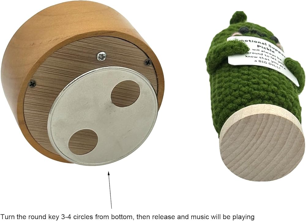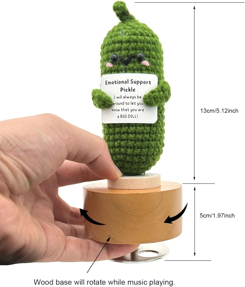 [مادة قوية] - صندوق الموسيقى مصنوع من قاعدة من خشب الحور الطبيعي عالي الجودة مع طلاء أصفر وحركة Yunsheng المعدنية بالداخل؛ مخلل الدعم العاطفي المضحك مصنوع من الصوف الناعم المحبوك ومحشو بالقطن من الداخل.