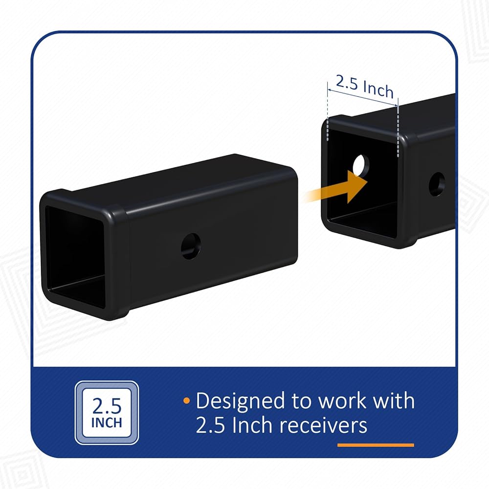أنبوب استقبال وصلة المقطورة PENSUN من 2.5 إلى 2 بوصة مع دبوس وصلة ومشبك 2.5 بوصة × 6 بوصة محول وصلة مقطورة مناسب لمرفقات وصلة المقطورة مقاس 2 بوصة