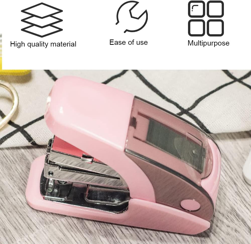 【Easy to Use】Mini Stapler You only need to press with one finger to complete the binding, simple and fast, easy to save effort; it is compact and lightweight, can be put into a school bag, handbag or laptop bag at any time to carry.