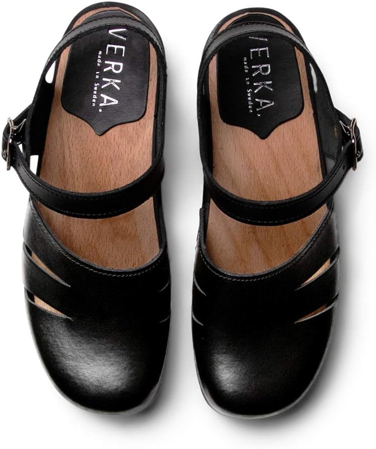 قباقيب Verka مصنوعة يدويًا في السويد مع براءة اختراع أصلية 100% وجلد تقليدي يسهل تنظيفه بقطعة قماش مبللة.