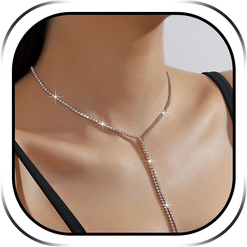 Long Rhinestone Necklace: The Long Rhinestone Necklace features shiny style fine chain necklace, which make you look more elegance and charming on any occasion, a perfect accessory for prom, party, birthday party.