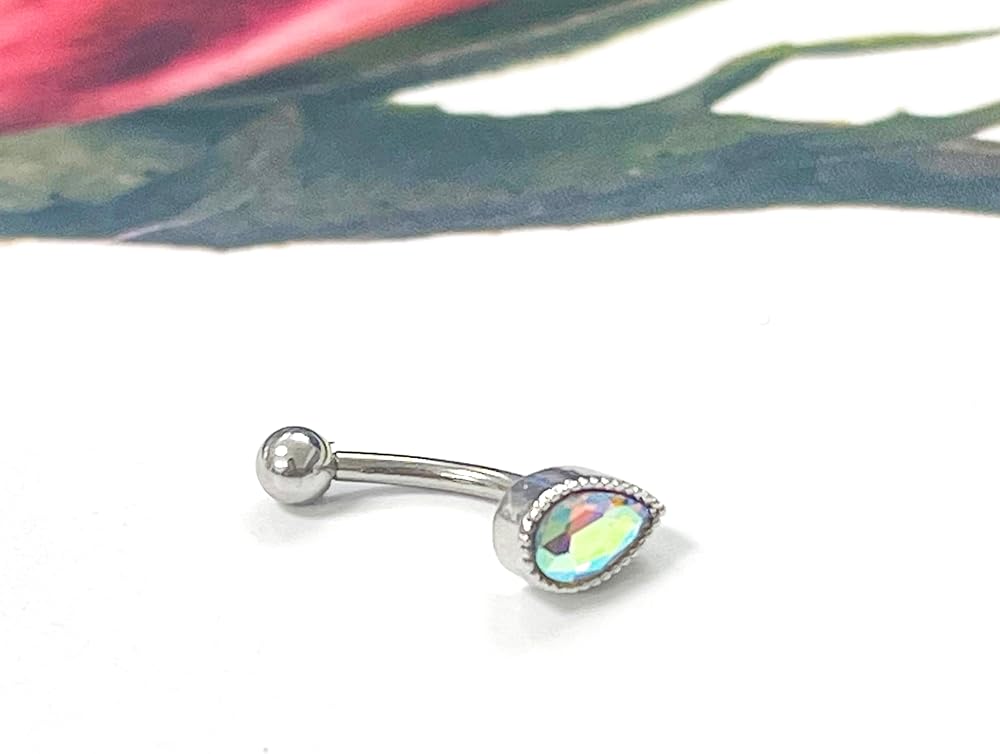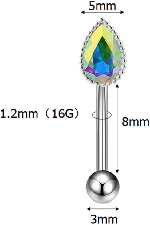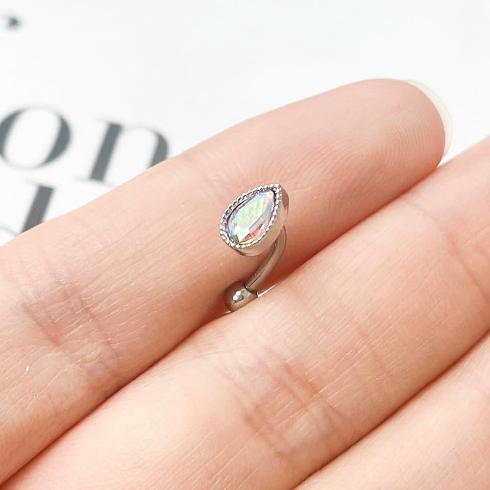 المواد: حلقة الحواجب الملونة على شكل دمعة مصنوعة من الفولاذ الجراحي المضاد للحساسية، وخالية من الرصاص والنيكل، وآمنة للارتداء على جسمك.