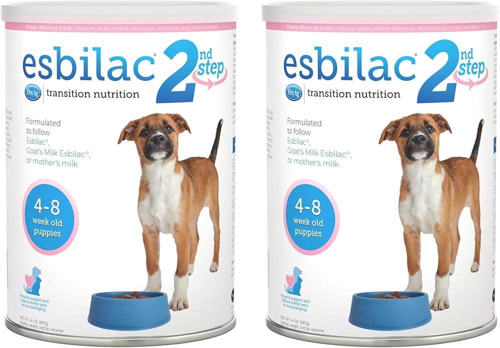 Made in the USA. A highly digestible complete food for young growing puppies. Esbilac 2nd Step Puppy Weaning Food is a creamy transitional cereal developed to follow Esbilac, for easy transition from milk to solid food. It s completely balanced nutrition meets the nutritional requirements for growth established by the Association of American Feed Control Officials (AAFCO). Esbilac 2nd Step Puppy Weaning Food has superior digestibility and palatability. This is an offering for multi quantity bundle - 2 count