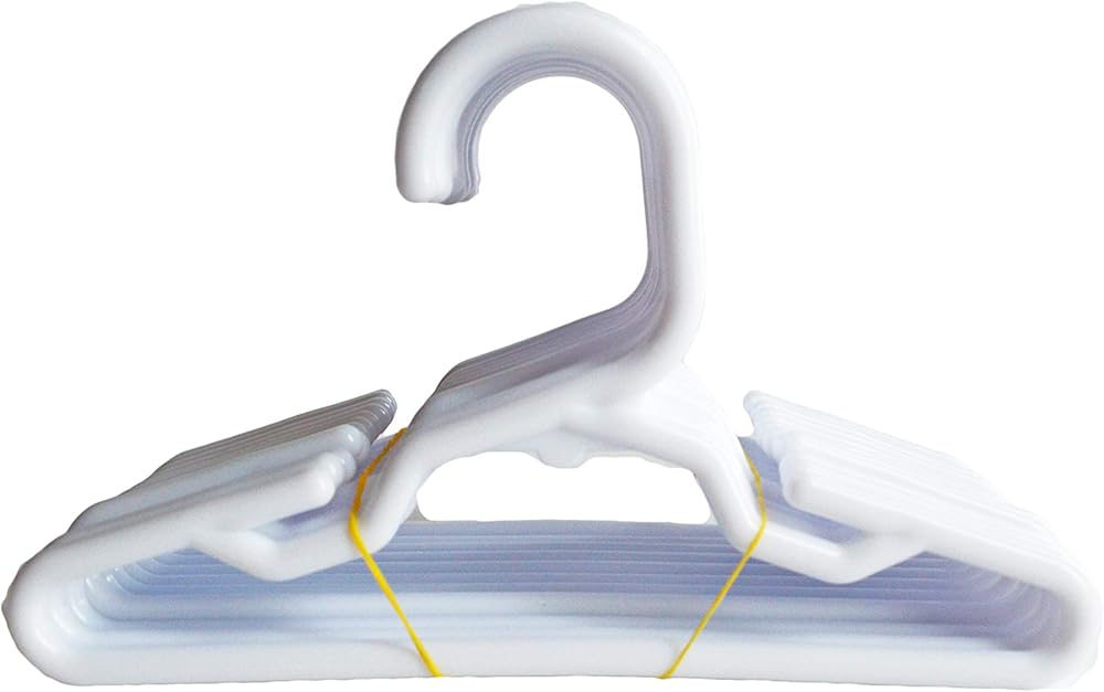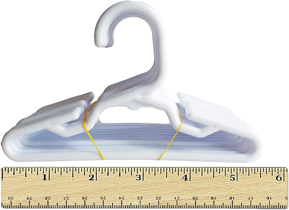 12 White 5.5 Inch Hangers. Compatible with 14 inch dolls. Compatible with 18 inch dolls. 5.5 Inches Wide. Will fit in many of those hard to fit Armories.