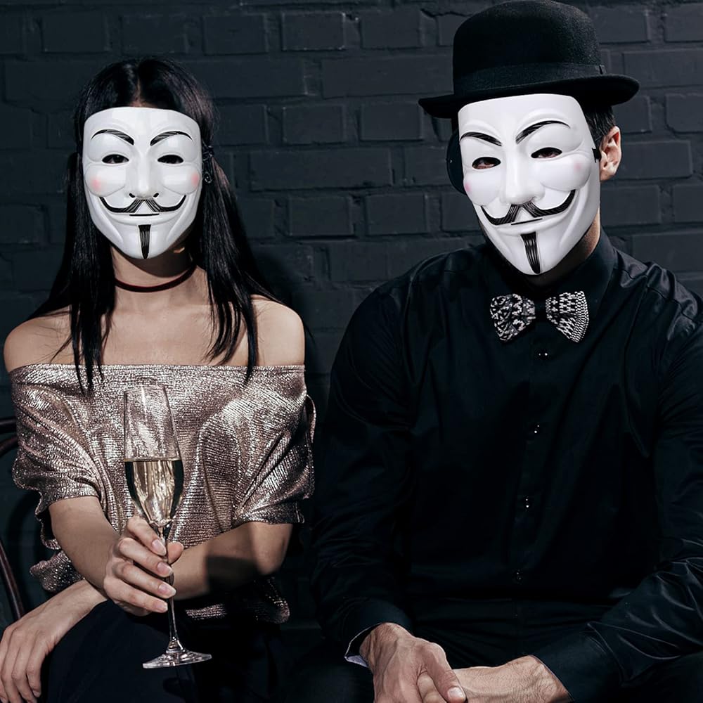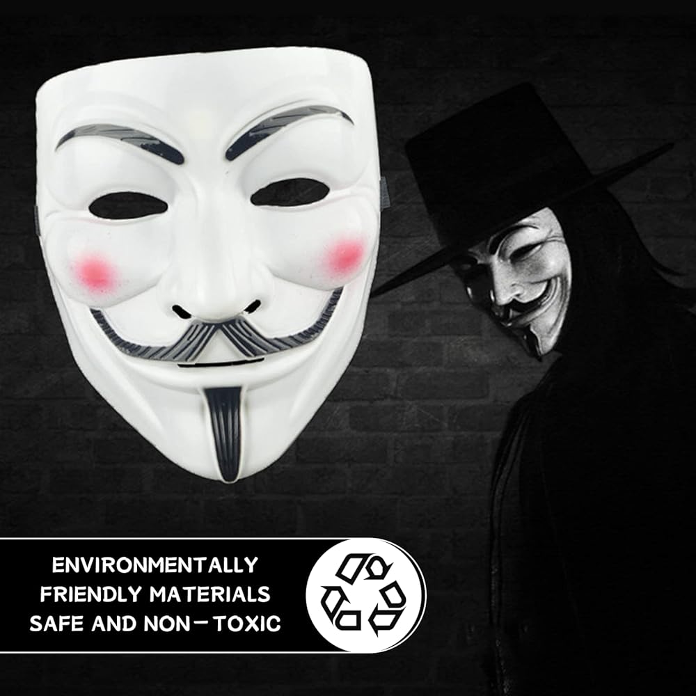 The mask is secured with a black ribbon ties for easy wear and adjustment / mask for adults / game master mask / hacker mask / vendetta mask