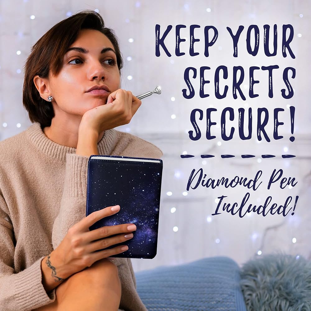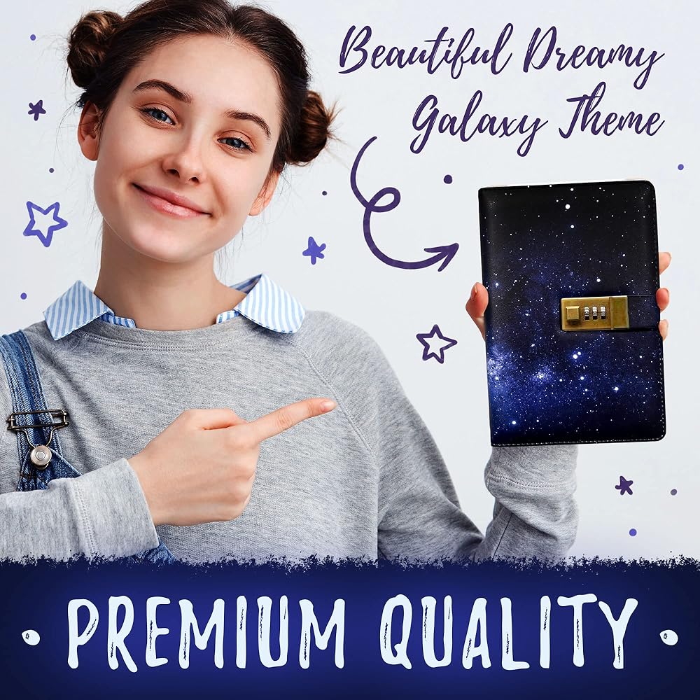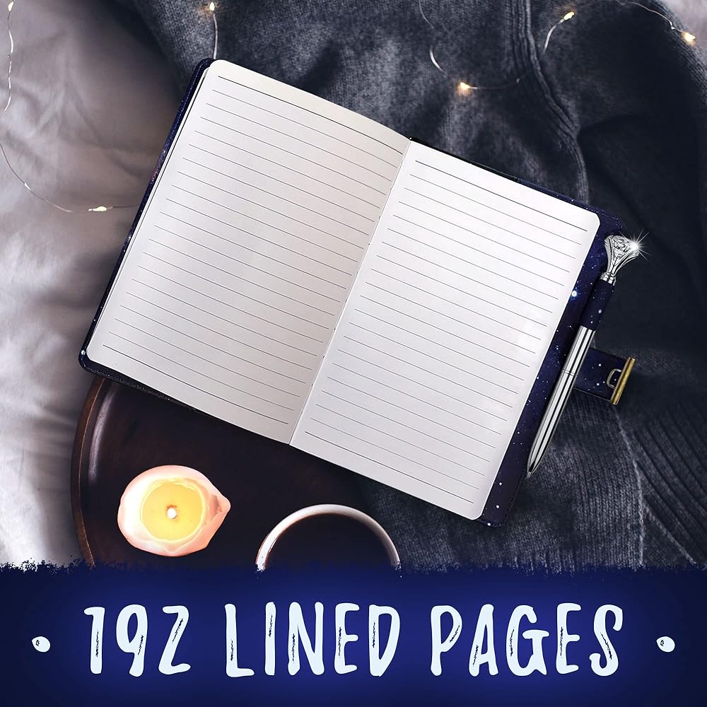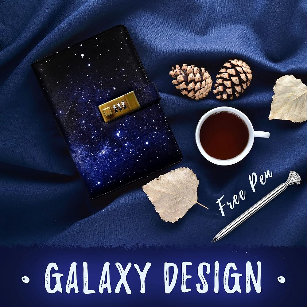 [تصميم داكن] نحن نصنع أحدث مجلة قابلة للقفل بتصميم سماء الليل باللون الأزرق الداكن في السوق! مع المجلة الجلدية ذات القفل، ستشعر بشعور رائع بالكتابة في مجلة ذات ألوان زاهية - تعزز الشعور بالمرح في مساحتك الخاصة! لم يكن أي من عملائنا مسرورًا بمجموعاتنا!