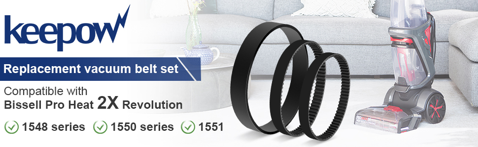 【Compatibility】Replaceable belt sets are perfectly compatible with Bissell Pro Heat 2X Revolution, models 1548 series & 1550 series & 1551, like1548, 1548, 15482, 15483, 1548L, 1548P, 1548Q, 1548R, 1548T, 1548U, & 1550, 15501, 15503, 15504, 15505 , 15506, 15507, 1550F, 1550G & 1551.