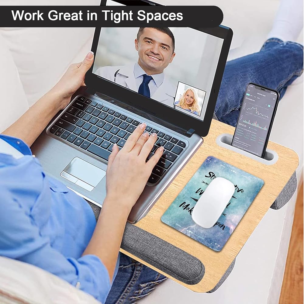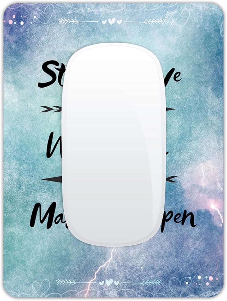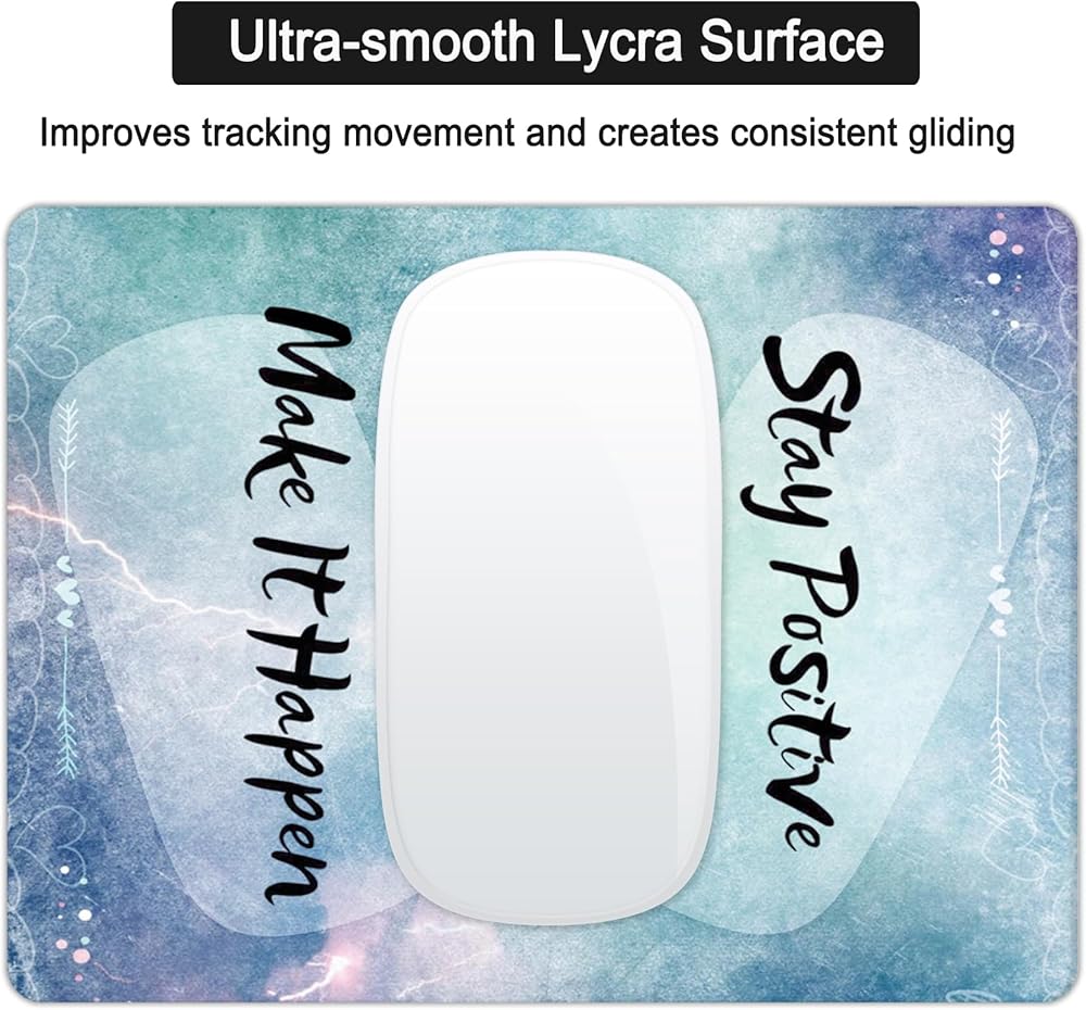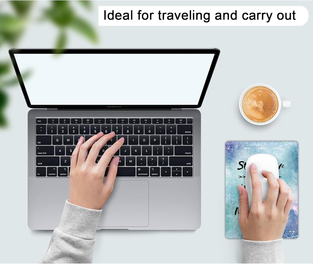 Our mini mouse pad is not only very pretty but also very practicality. It has material like a yoga mat and it's not harsh on your wrist either. Mouse can easily glide on it and it stays in place.