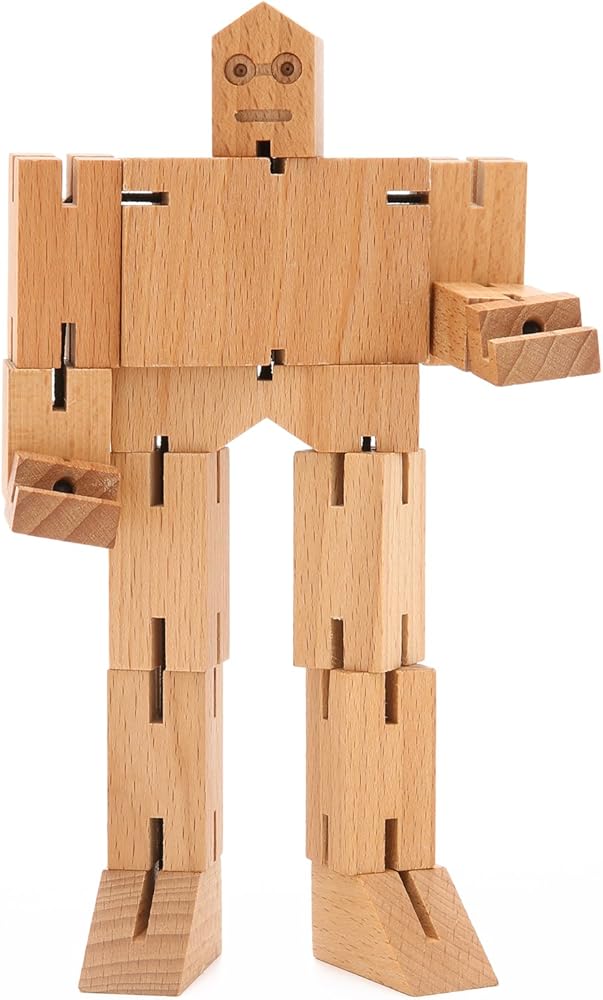 Cubebot is a wooden toy robot inspired by Japanese Shinto Kumi-ki puzzles. Made from wood and elastic, Cubebot can be positioned to hold dozens of poses. When it's time to rest, Cubebot folds back into a perfect cube. A classic toy for all ages that will endure generations of play.