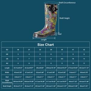 • MEASUREMENT: Heel:1.1"/2.8cm, Platform:0.4"/1cm, Shaft height:11.4"/29cm, Shaft circumference:16''/40.5cm.We send Europe size, please refer to your foot length to choose the US size. These rain boots run small ,please choose one size bigger.