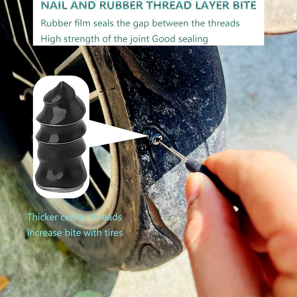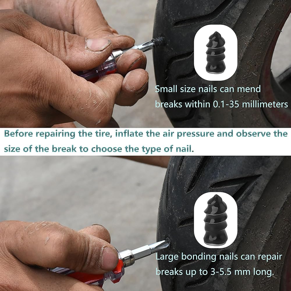 مادة موثوقة: أظافر إصلاح الإطارات مصنوعة من جسم مطاطي فاخر ورأس معدني، قوي ومتين، يمكن للخيط السميك الأوسط أن يعزز بشكل فعال قوة العض بين المسمار والإطار، مع تأثير إغلاق جيد، بعد التثبيت، يمكنه منع الهواء تسرب ودخول الماء إلى الجزء التالف.
