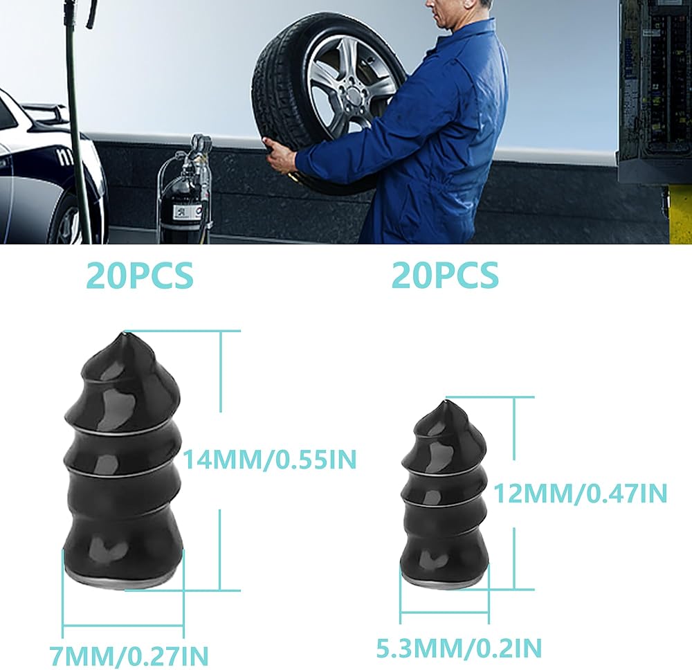 الحجم: مقاسان: الأحجام الصغيرة: 5.2 × 12 ملم / 0.2 × 0.48 بوصة؛ الأحجام الكبيرة: 6.6 × 15 ملم / 0.26 × 0.59 بوصة. 20 قطعة لكل حجم، كمية كافية يمكن أن تلبي احتياجات إصلاح الإطارات الخاصة بك.