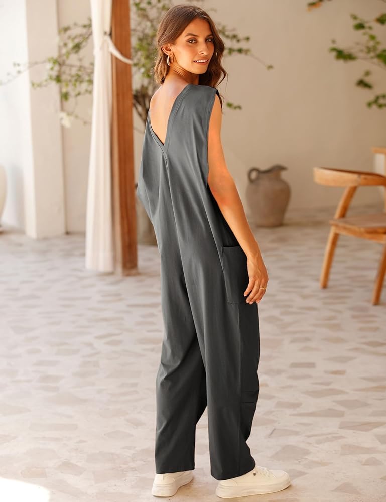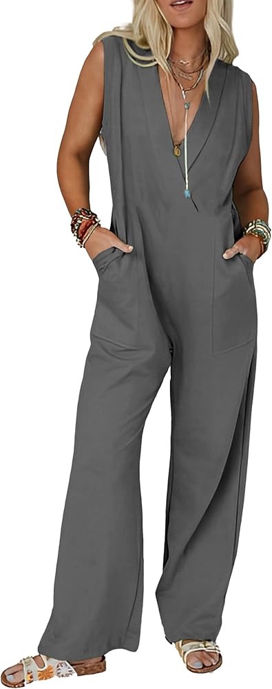 فيونا جولين جمبسوت غير رسمي بدون أكمام للنساء صيفي فضفاض، ملابس فضفاضة مثيرة، قطعة واحدة