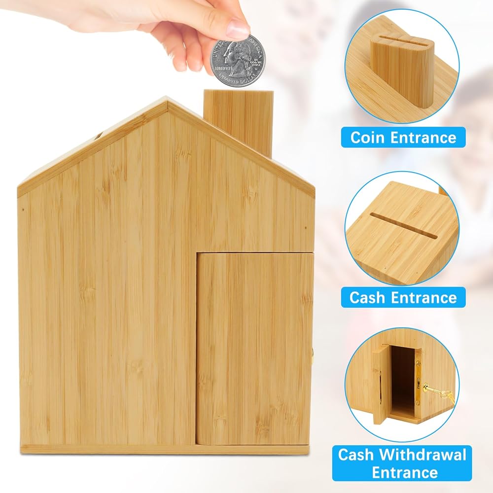 حرفية الديكور: استمتع بتجربة فن التوفير مع الحصالة الكبيرة المصنوعة من الخيزران. إنه ليس مجرد بنك للعملات المعدنية للبالغين؛ إنها إضافة أنيقة لديكور منزلك. استثمر في هذه التحفة الخشبية لتأمين مدخراتك مع إضافة لمسة من الأناقة إلى مساحة المعيشة الخاصة بك.
