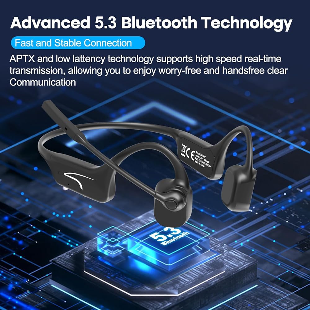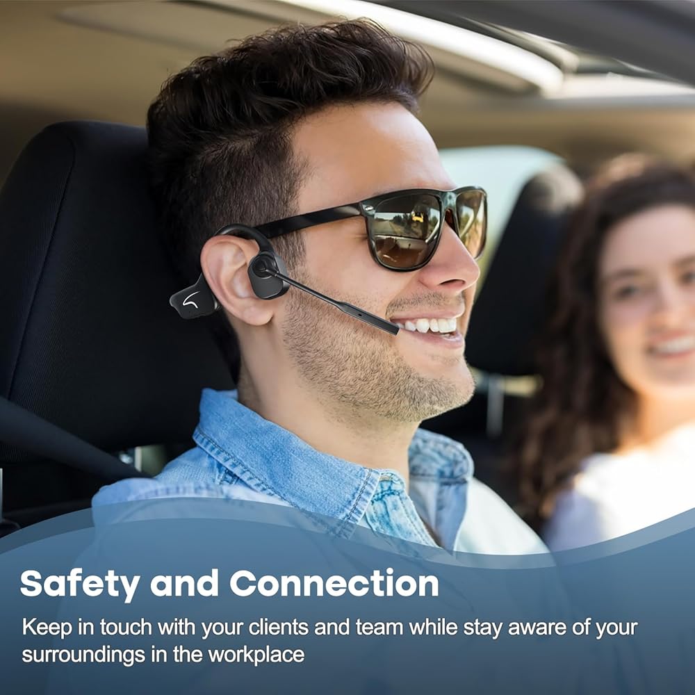ALGORITHM DUAL MIC NOISE CANCELING سماعات الرأس التوصيل العظمي - سماعة رأس بلوتوث لاسلكية تتميز بميكروفون قابل للتعديل تمكنك من التقاط الصوت بصوت عالٍ وواضح. يعمل ميكروفون Ai المزدوج المانع للضوضاء على التخلص من ضوضاء الخلفية بنسبة 98% بشكل فعال لإجراء محادثات واضحة حتى في البيئات الصاخبة، وهو مثالي للمكالمات الهاتفية على الشاحنات، ومؤتمرات الفيديو، واجتماعات العمل، والعمل المكتبي المنزلي، والتعلم عبر الإنترنت والمزيد.