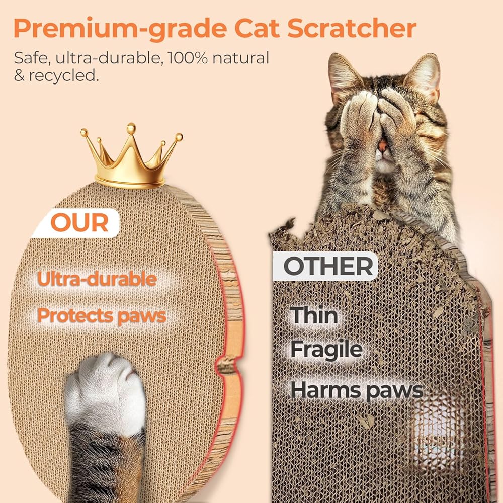 [تصميم فوضى مصغر] سرير خدش القطط الخاص بنا مصنوع من ألياف السيزال المنسوجة بكثافة والتي من غير المرجح أن تنتج حطامًا ممزقًا. حان الوقت لنقول وداعًا لخيارات الورق المقوى الفوضوية.