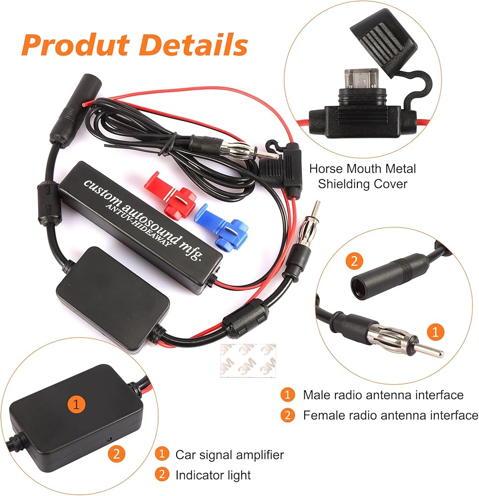 🚗【تقليل الضوضاء】يتميز معزز هوائي الراديو الاستيريو للسيارات بمقاومة عالية للتداخل. يستخدم كابلات نحاسية رفيعة ورقائق ألومنيوم سميكة لتقليل الضوضاء.
