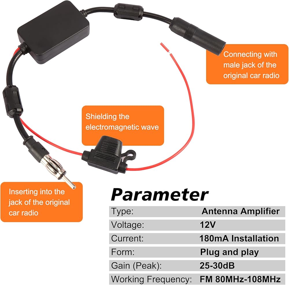🚗【تضخيم الإشارة】 يمكن لمضخم إشارة FM زيادة مسافة الاستقبال وتعزيز حساسية الإشارة.