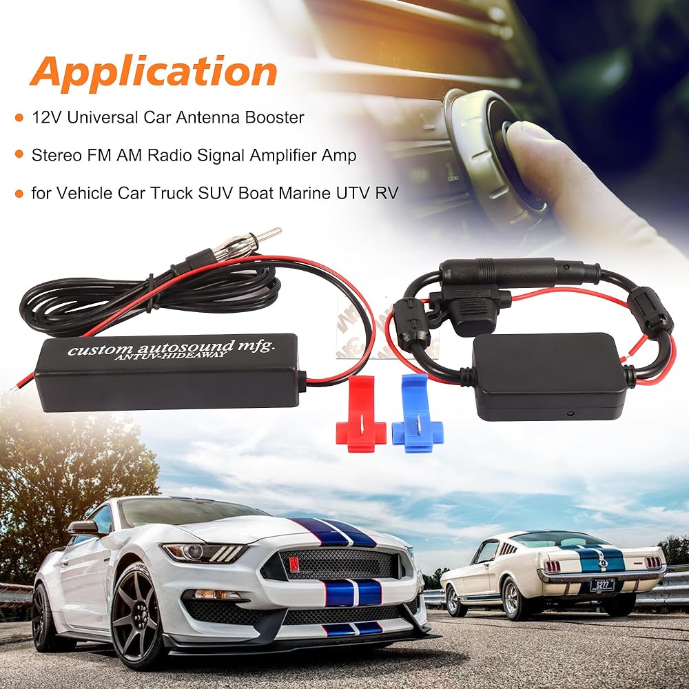 🚗【تركيب عالمي】يتم استخدام معزز هوائي راديو السيارة BASIKER 12 فولت ومحول موصل قابس الطاقة الخاص به لجهاز استقبال مضيف وسائط ستيريو الراديو الصوتي لسيارة السيارة والشاحنة SUV UTV RV Boat Marine.