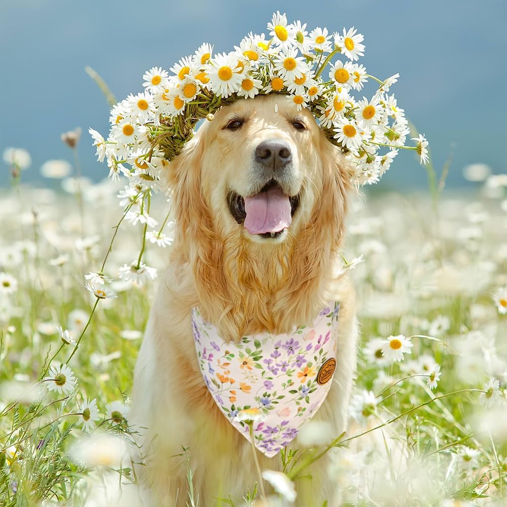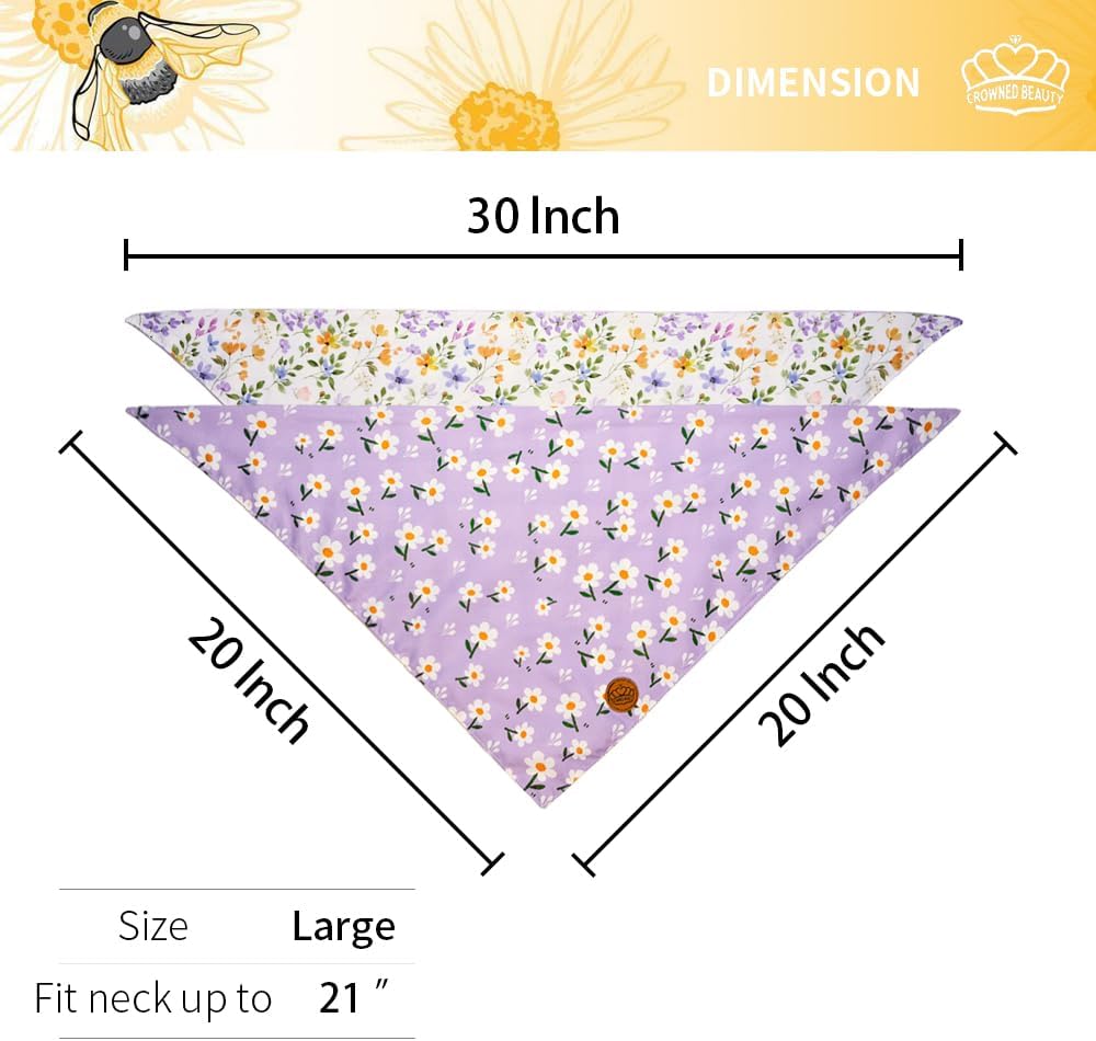 تصميم ذو وجهين: تتميز كل منديل كلب بتصميم على الوجهين، جانب واحد بأنماط ربيعية مرسومة يدويًا، والجانب الآخر بنقش منقوش/مخطط/نقاط البولكا. لذلك مع قطعتين من منديلات الكلاب كراوند بيوتي، ستحصل صغارك على 4 مظاهر جديدة ومنعشة.