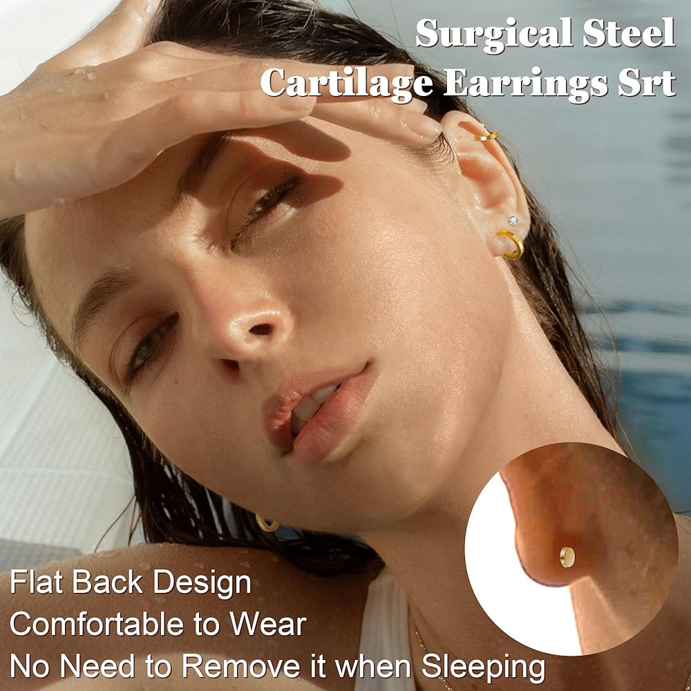 💕أقراط غضروفية مضادة للحساسية بظهر مسطح💕: مصنوعة من الفولاذ الجراحي 316l، وهي مادة آمنة صديقة للبشرة الحساسة، وخالية من النيكل والرصاص. سطح مصقول عالي الجودة يضمن الاحتفاظ بالألوان لفترة طويلة وتجربة ارتداء مريحة.