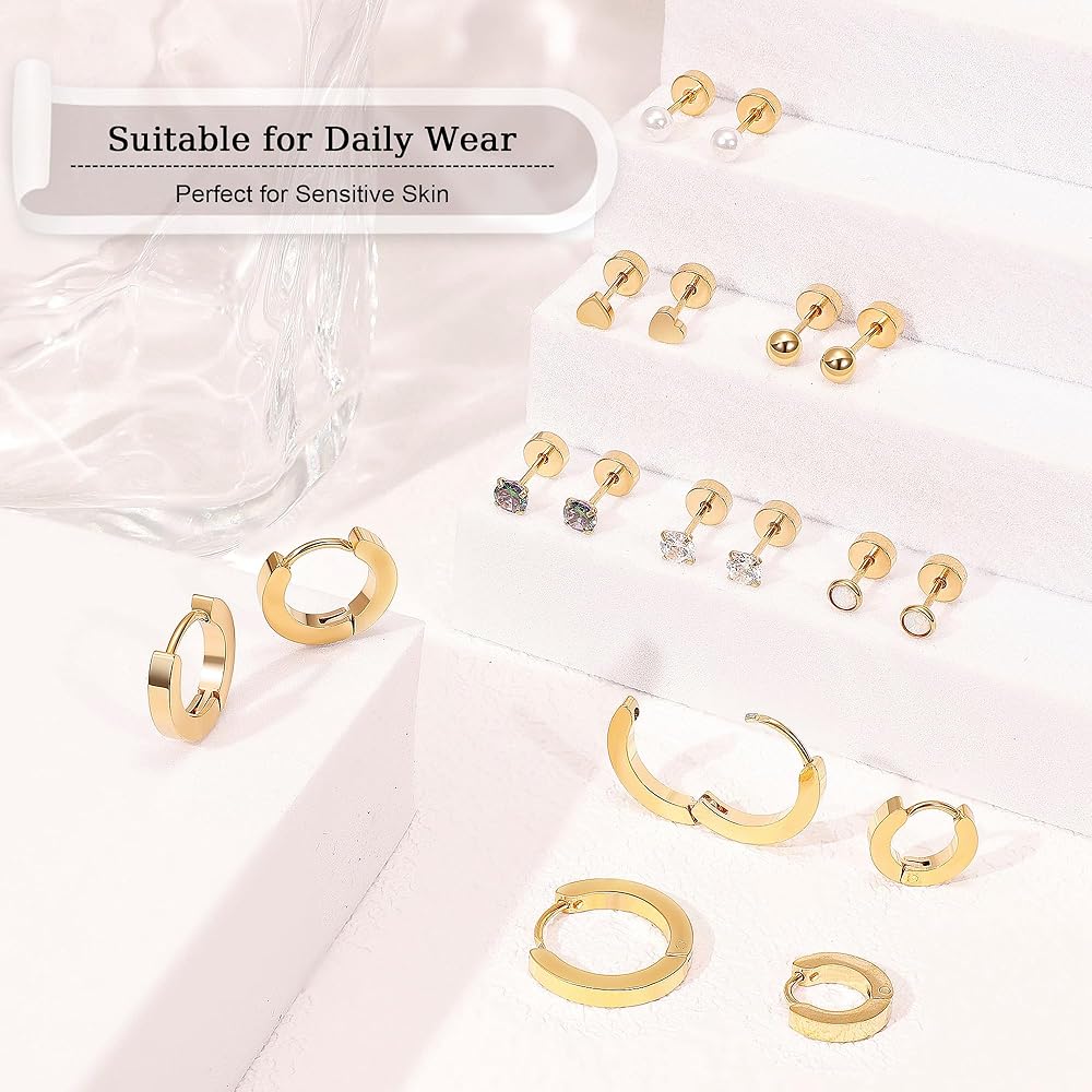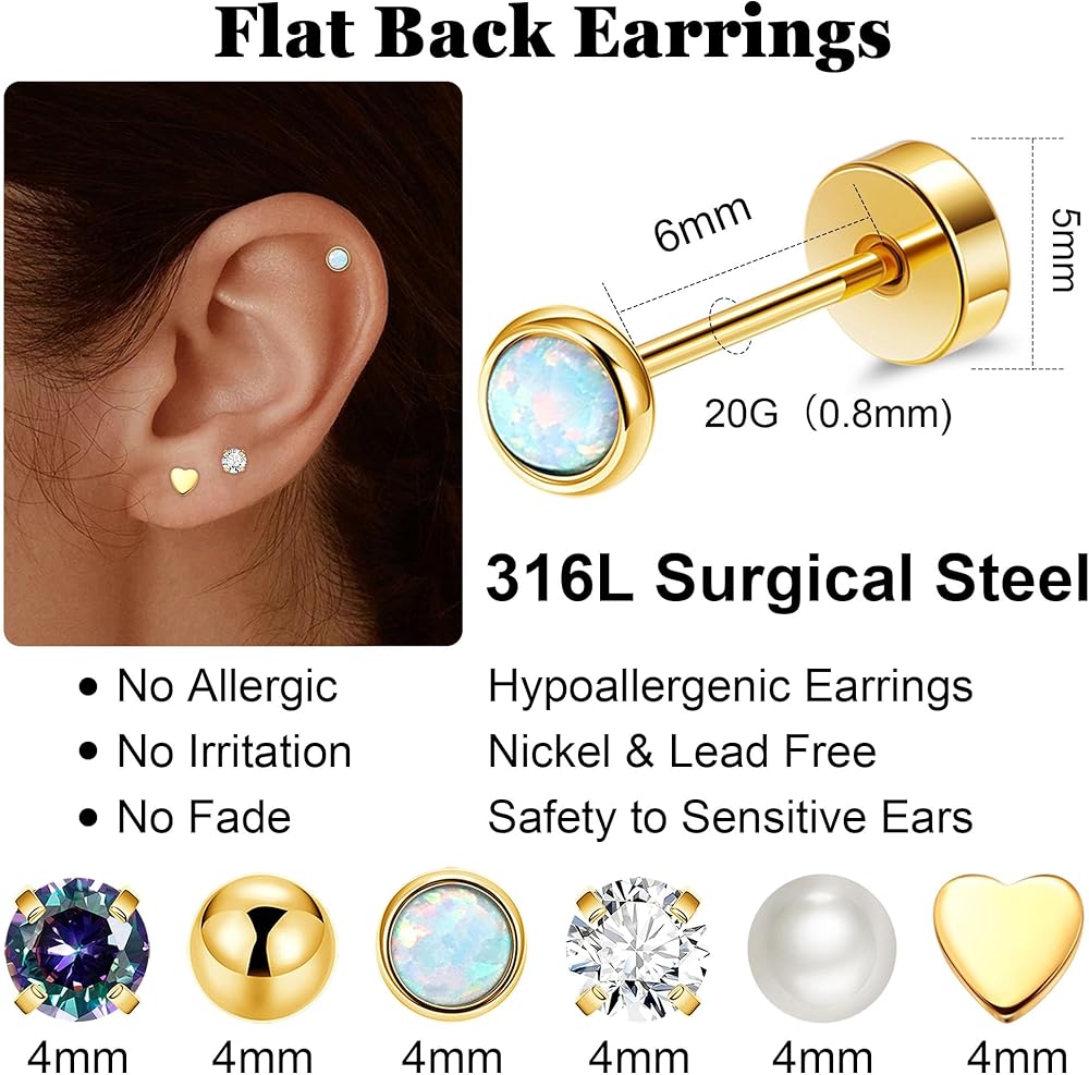 ⚡مجموعة أقراط خلفية مسطحة: طلب واحد يتضمن 6 أزواج من الأقراط ذات الظهر المسطح بأنماط مختلفة و4 أزواج من الأقراط الحلقية المسطحة. جميعها جميلة وأنيقة، ويمكن أن تتناسب مع ملابسك المختلفة، مما يجعلك أكثر تميزًا وسحرًا.