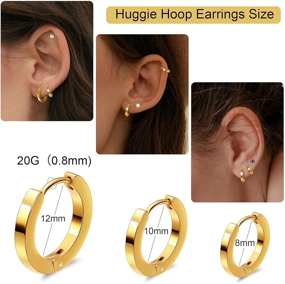 🔎الحجم والتصميم🔎: حجم مقياس الطوق الغضروفى هو 20 جم (0.8 مم). حجم الأقراط ذات الظهر المسطح: طول الدبوس 6 مم، مقاس الظهر المسطح 5 مم، حجم الكرة 4 مم، تصميم خلفي مسطح، آمن ومريح في الارتداء. مقاس أقراط هوجي هوب: القطر الداخلي 8 مم/10 مم/12 مم، تصميم الفرس قابل للتعديل بسهولة.