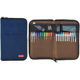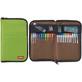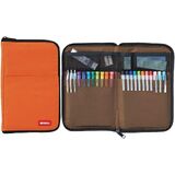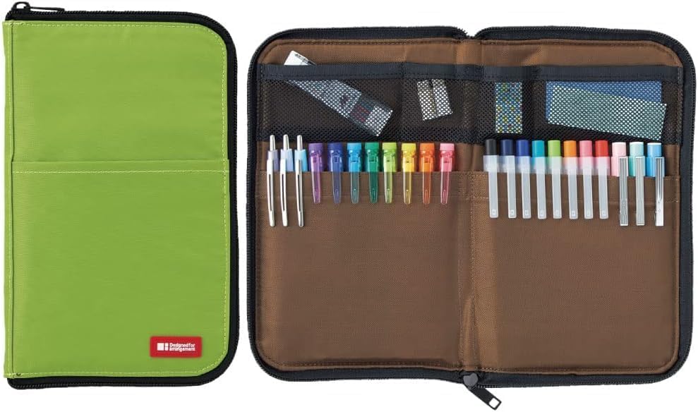 This slim pen/pencil pouch unzips to open like a book; making it easy to organize and access your supplies. Inside the case, internal pockets hold up to 22 standard sized pens and the mesh pockets are perfect for holding small sticky notes, clips, erasers, etc. The flat body of the case allows it to easily fit into almost any bag or organizer.