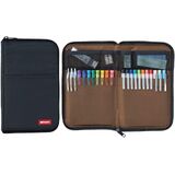 • MULTIPLE COMPARTMENTS: internal pockets hold up to 22 standard sized pens; mesh pockets are ideal for holding small sticky notes, clips, erasers, etc